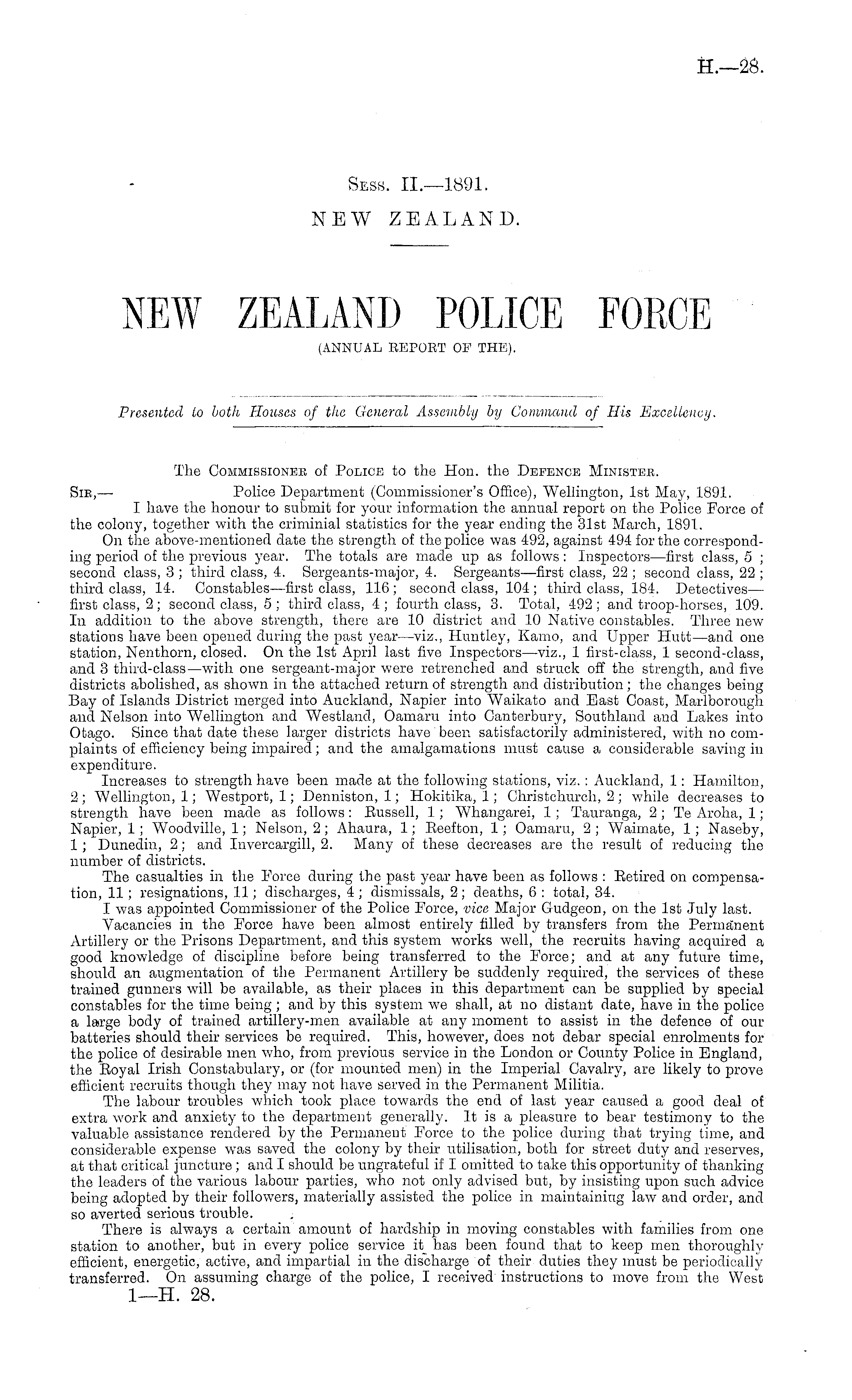 NEW ZEALAND POLICE FORCE (ANNUAL REPORT OF THE).