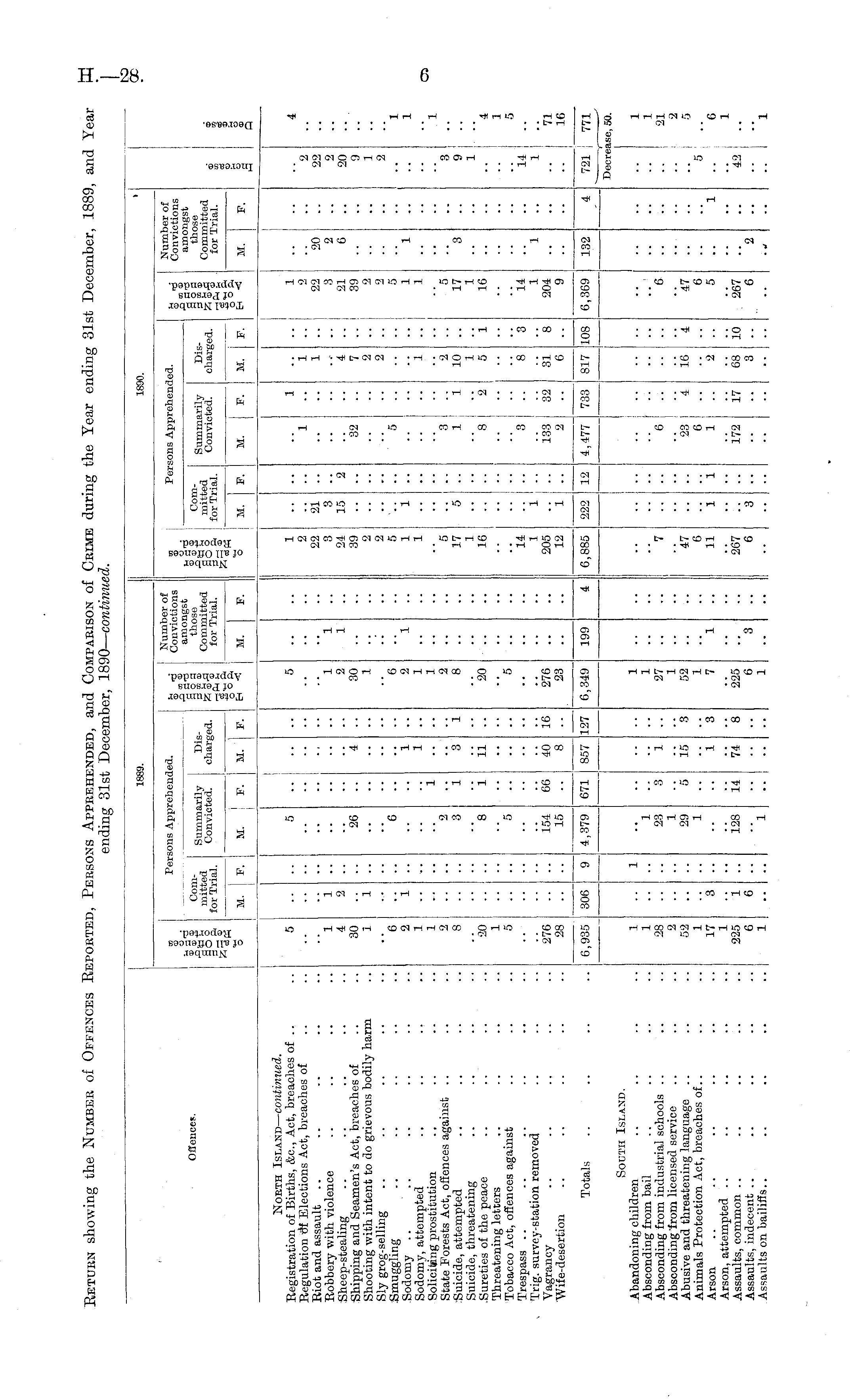 Return showing the Number of Offences Reported, Persons Apprehended, and Comparison of Crime during the Year ending 31st December, 1889, and Year ending 31st December, 1890— continued.