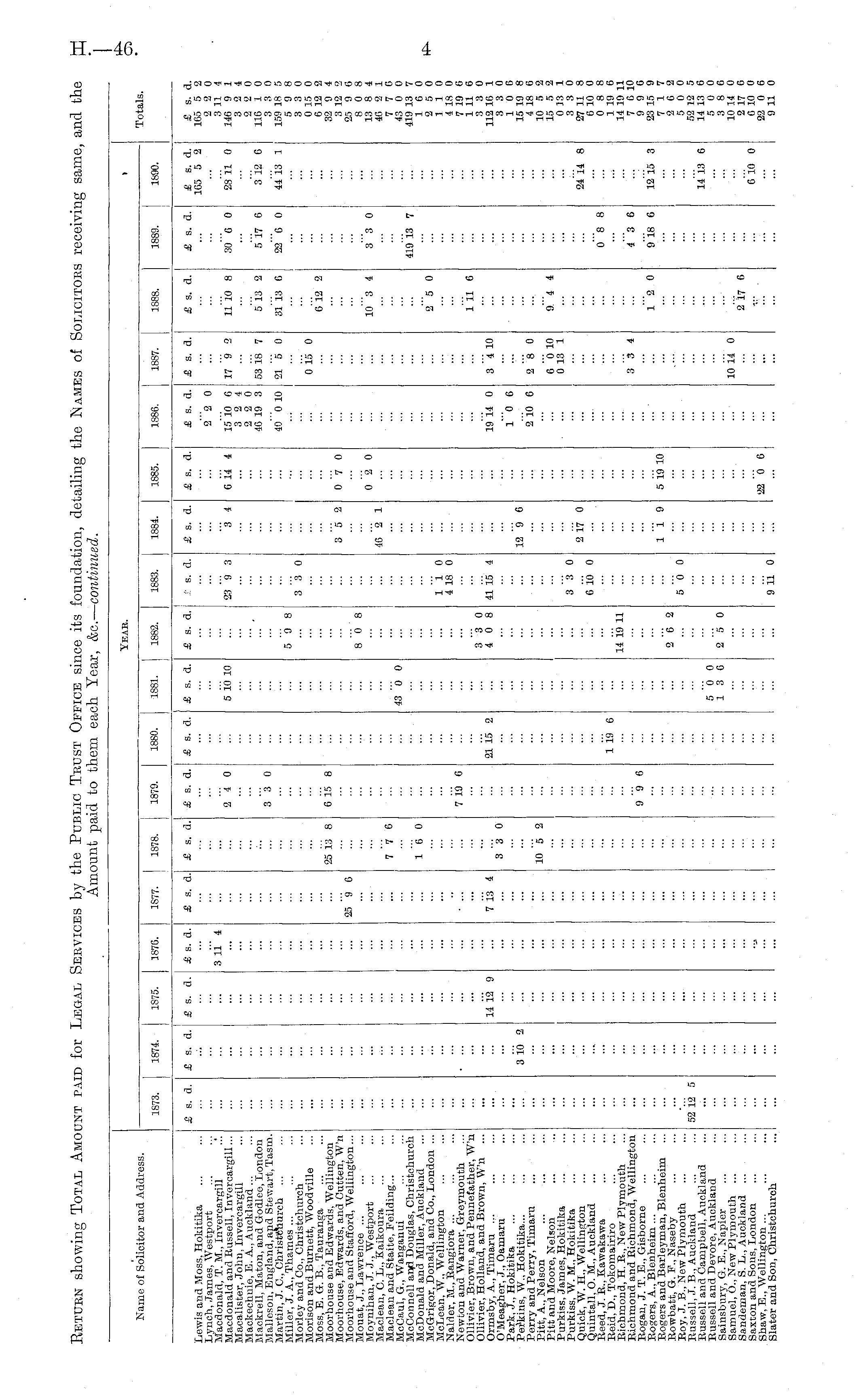 Return showing Total Amount paid for Legal Services by the Public Trust Office since its foundation, detailing the Names of Solicitors receiving same, and the Amount paid to them each Year, &c.— continued.