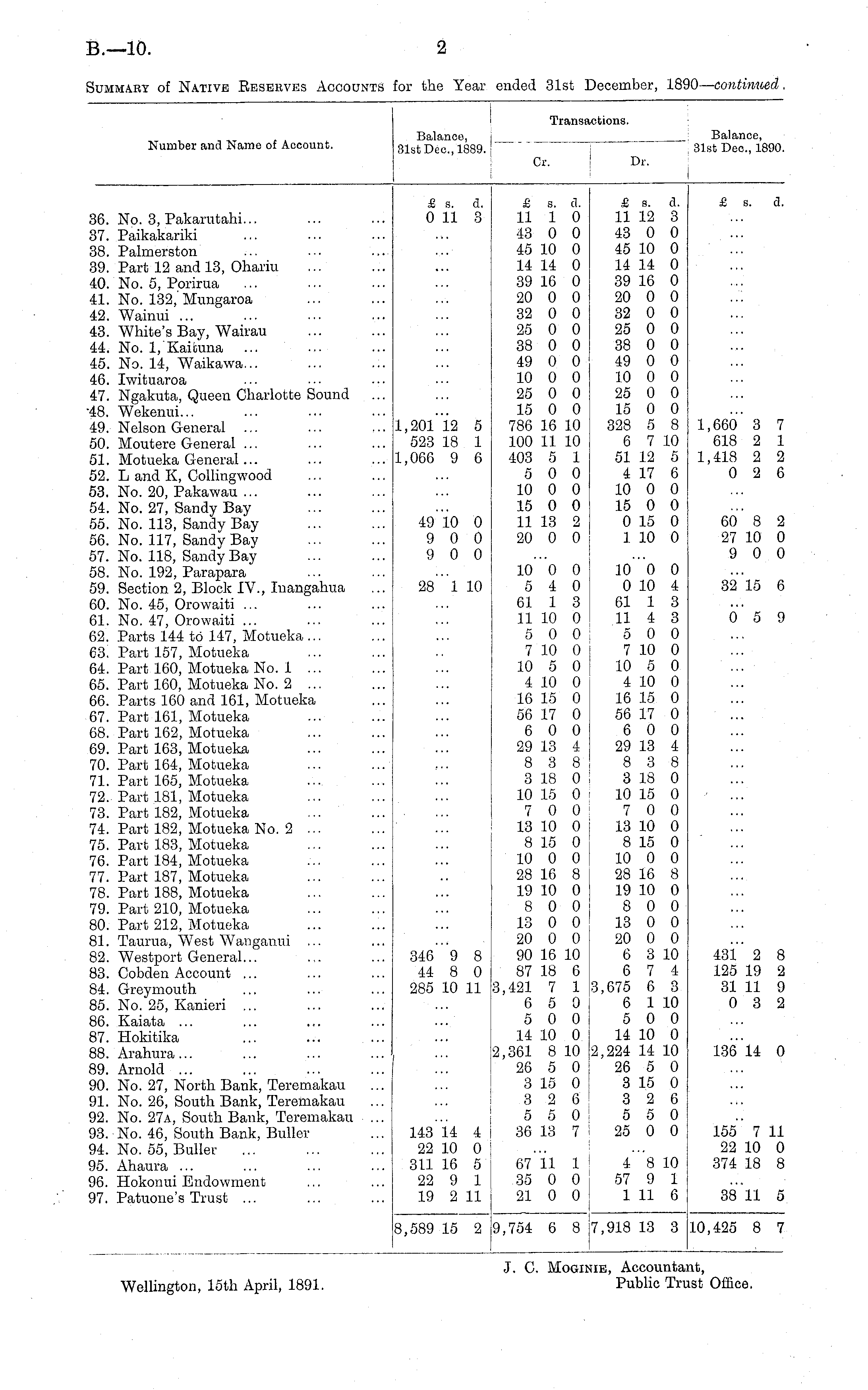 J. C. Moginie, Accountant, Wellington, 15th April, 1891. Public Trust Office.