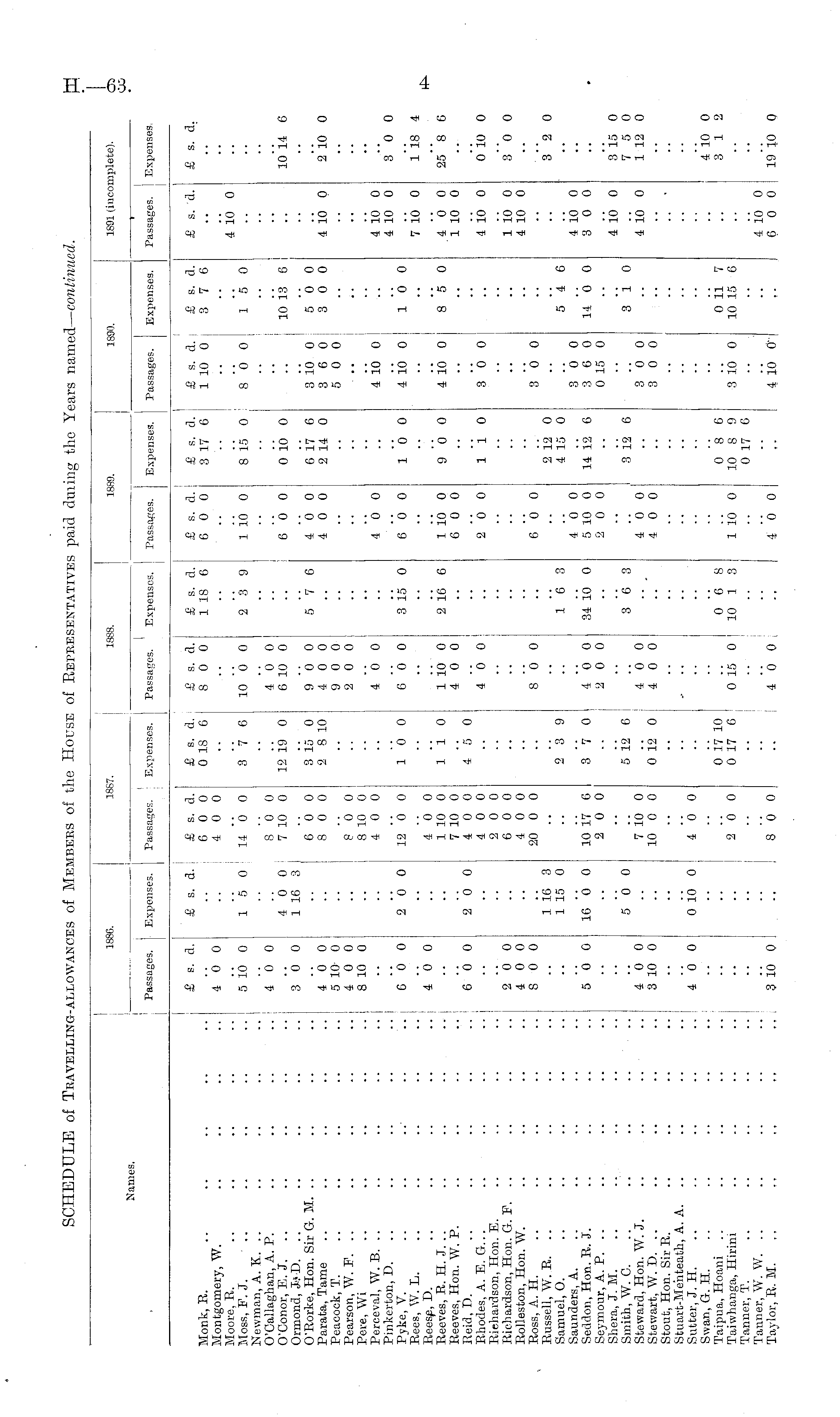 1886. 1887. 1888. 1889. 1890. 1891 (incomplete). Names. Passages. Expenses. Passages. Expenses, j Passages. Expenses. Passages. Expenses. Passages. Expenses. Passages. Expenses, I £ s. d. £ b, a. £ s. d. 6 0 0 4 0 0 £ s. d. 0 18 6 £ s. d. 8 0 0 £ s. d. 1 18 6 £ s. cl. 6 0 0 £ s. cl. 3 17 6 8 15 0 £ s. d. i £ s. d. 1 10 0 1 3 7 6 8 0 0 15 0 £ s. a. £ s. d. Monk, B. Montgomery, W. Moore, B. Moss, P. J. Newman, A. K. .. O'Callaghan, A. P. O'Conor, E. J. Ormond, J." D. O'Eorke, Hon. Sir G. M. .. Parata, Tame Peacock, T. Pearson, W. F. .. Pere, Wi Perceval, W. B. .. Pinkorton, D. Pyke, V. Eoes, W. L. Reese, D. Eeeves, R. H. J. .. Beeves, Hon. W. P. Reid, D. Rhodes, A. E.G... Biehardson, Hon. E. Richardson, Hon. G. P. Eolleston, Hon. W. Boss, A. H. Russell, W. B. .. Samuel, 0. Saunders, A. Seddon, Hon. E. J. Seymour, A. P. .. Shera, J. M. Smith, W. C. Steward, Hon. W. J. Stewart, W. D. .. Stout, Hon. Sir E. Stuart-Mehteath, A. A. Sutter, J. H. Swan, G. H. Taipua, Hoani Taiwhanga, Hirini Tanner, T. Tanner, W. W. .. Taylor, E. M. 4 0 0 5 10 0 4 0 0 3 0 0 4 0 0 5 10 0 4 0 0 8 10 0 G00 4 0 0 GOO 15 0 4 0 0 1 1G 3 2 '6 0 2 '6 0 14 '6 0 8 0 0 7 10 0 6 '6 0 8 0 0 8 0 0 8 10 0 4 0 0 12 0 0 4 0 0 1 10 0 7 10 0 4 0 0 4 0 0 2 0 0 6 0 0 4 0 0 20 0 0 3 "l 6 12 19 0 3 15 0 2 8 10 10 0 i i o 4 5 0 | 10 0 0 4 0 0 6 10 0 9 0 0 4 0 0 9 0 0 2 0 0 4 0 0 6 '6 0 1 10 0 4 0 0 4 "6 0 2 3 9 5 '7 6 3 15 0 2 16 G 1 10 0 6 0 0 4 '6 0 4 0 0 4 0 0 6 0 0 1 10 0 6 0 0 2 0 0 0 10 0 6 17 6 2 14 0 •■ 1 '6 0 9 0 0 lie '.'. 10 13 6 3 10 0 5 0 0 3 6 0 3 0 0 5 0 0 I . . 4 16 0 j '.'. 4 10 0 . 10 0 4 10 0; 8 '5 0 3 0 0 410 0 416 0 410 0 410 0 710 0 4 0 0 1 10 0 4 10 0 1014 ( 2'lO ( 3 0 ( l'is i 25"8 ( 0 10 ( 2 0 0 4 0 0 8 0 0 •■• 1 10 0 4 10 0 3"o ( 1 16 3 1 15 0 8 0 0 6 0 0 2 12 0 4 15 0 14 12 6 3 0 0 5 4 6 3 0 0 3 6 0 14 0 0 0 15 0 2 3 9 3 2 ( 16 3 5 0 0 16 0 0 10 17 6 2 0 0 3 "l 0 4 0 0 2 0 0 34 10 0 4 0 0 5 10 0 2 0 0 4 10 0 3 0 0 5 0 0; 5 12 6 0 12 0 ! 4 0 0 4 0 0 3 6 3 4 10 0 3 15 ( 7 5 ( 1 12 i 4 0 0 3 10 0 7 10 0 10 0 0 4 0 0 4 0 0 3 12 6 3 10 3 0 0 3 0 0 4 10 0 4 0 0 0 10 0 4 '6 0 - ■• "" 4 10 I 3 1 ! • • 2 '6 0 0 17 10 0 17 6 0 15 0 | 0 "(5 8 10 1 3 1 10 0 0 8 6 10 8 9 0 17 0 0 11 7 3 10 0 10 15 6 .. I 3 10 0 •• 8 '6 0 4 0 0 4 0 0 4 10 0' ]'. 4 10 0 6 0 0 19 10 1 __