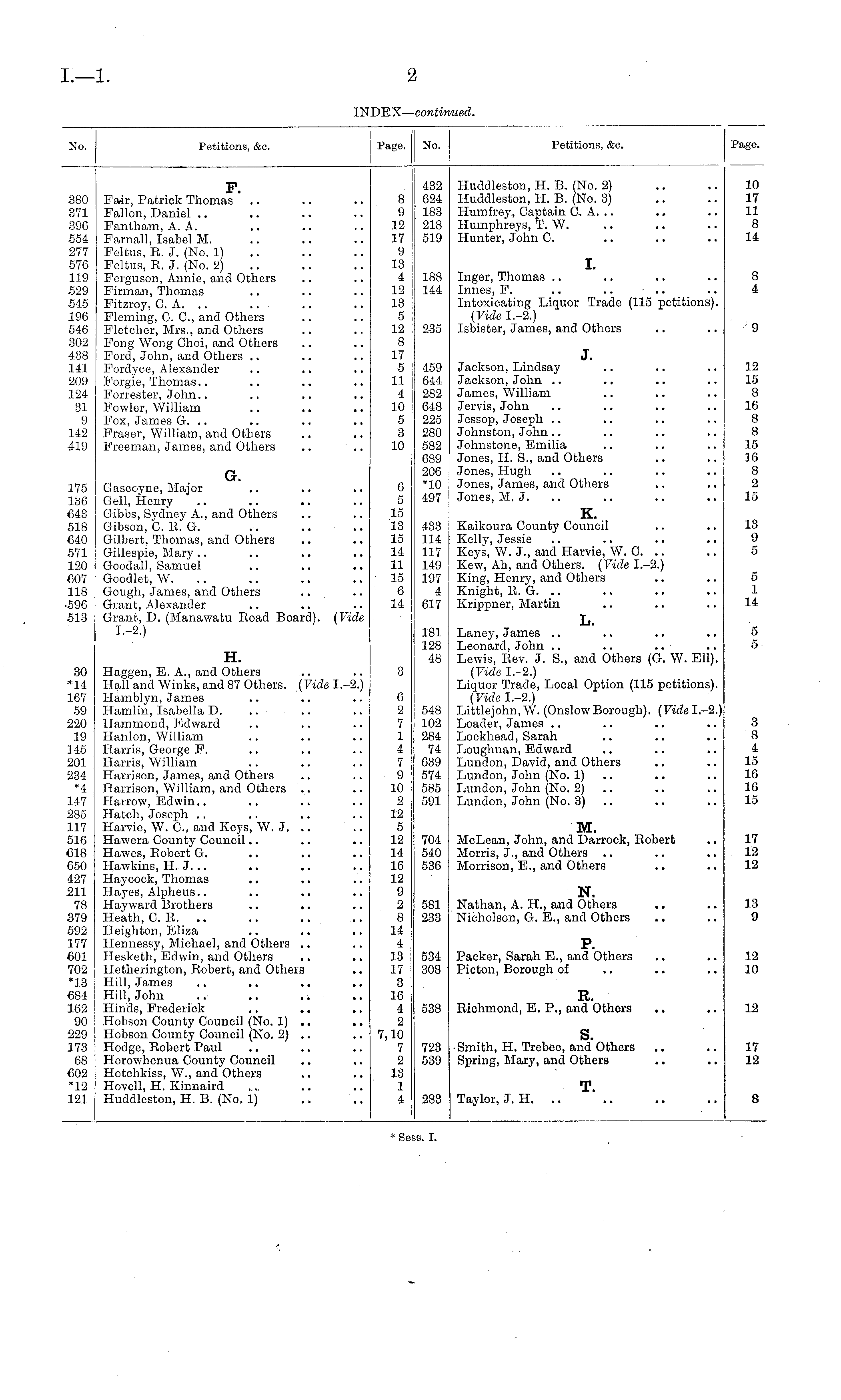 No. Petitions, &c. Page. 380 371 396 554 277 576 119 529 545 196 546 302 438 141 209 124 31 9 142 419 F. Pair, Patrick Thomas Fallon, Daniel .. Fantham, A. A. Famall, Isabel M. Feltus, R. J. (No. 1) Felfcus, E. J. (No. 2) Ferguson, Annie, and Others Firman, Thomas Fitzroy, C. A. .. Fleming, G. C, and Others Fletcher, Mrs., and Others Fong Wong Choi, and Others Ford, John, and Others Fordyce, Alexander Forgie, Thomas.. Forrester, John.. Fowler, William Fox, James G. . . Fraser, William, and Others Freeman, James, and Others .. .. 8 9 12 17 9 13 4 12 13 5 12 8 17 5 11 4 10 5 3 10 G. 6 5 15 13 15 14 11 15 6 14 175 136 643 518 640 571 120 607 118 ■596 513 Gascoyne, Major Gell, Henry Gibbs, Sydney A., and Others Gibson, C. E. G. Gilbert, Thomas, and Others Gillespie, Mary Goodall, Samuel Goodlet, W. .. Gough, James, and Others Grant, Alexander Grant, D. (Manawatu Eoad Board). (Vide I.-2.) 30 *14 167 59 220 19 145 201 234 *4 147 285 117 516 618 650 427 211 78 379 592 177 €01 702 "13 684 162 90 229 173 68 602 *12 121 H. Haggen, E. A., and Others Hall and Winks, and 87 Others. (Vide I.-2.) Hamblyn, James Hamlin, Isabella D. Hammond, Edward Hanlon, William Harris, George F. Harris, William Harrison, James, and Others Harrison, William, and Others .. Harrow, Edwin.. Hatch, Joseph Harvie, W. C, and Keys, W. J. .. Hawera County Council Hawes, Eobert G. Hawkins, H. J... Haycock, Thomas Hayes, Alpheus.. Hayward Brothers Heath, C. E. .. Heighton, Eliza Hennessy, Michael, and Others Hesketh, Edwin, and Others Hetherington, Eobert, and Others Hill, James .. .. .. .. Hill, John Hinds, Frederick Hobson County Council (No. 1) .. .. Hobson County Council (No. 2) .. Hodge, Eobert Paul Horowhenua County Council Hotchkiss, W., and Others Hovell, H. Kinnaird Huddleston, H. B. (No. 1) 3 0 2 7 1 4 7 9 10 2 12 5 12 14 16 12 9 2 8 14 4 13 17 3 16 4 2 7,10 7 2 13 1 4