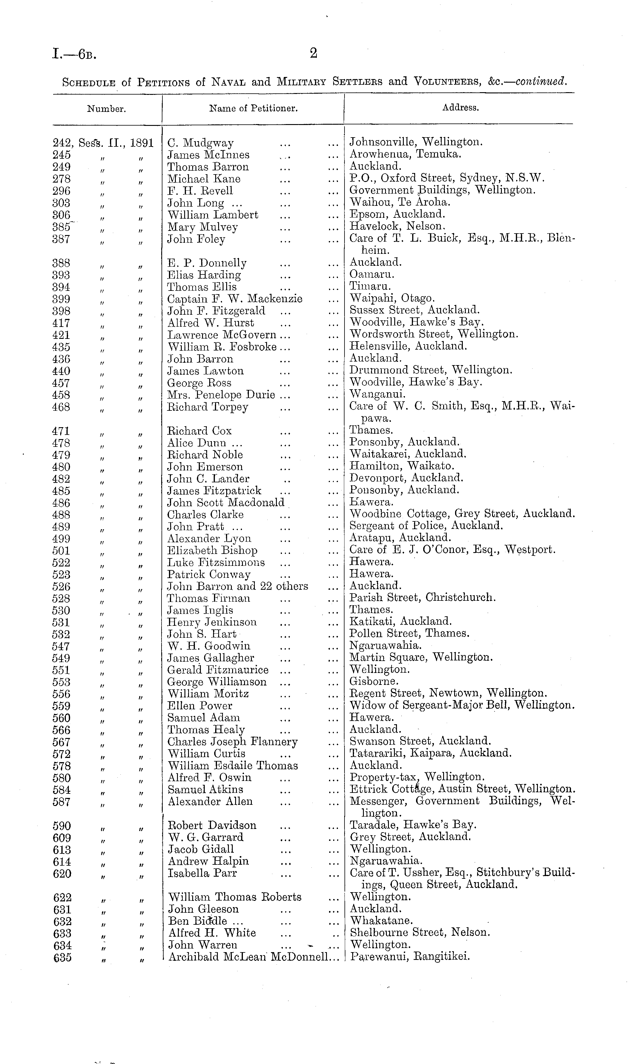 Number. Name of Petitioner. Address. 242, Sess. II., 1891 245 249 278 296 303 306 385"' 387 388 393 394 399 398 417 421 435 436 440 457 458 468 C. Mudgway James Mclnnes Thomas Barron Michael Kane E. H. Eevell John Long ... William Lambert Mary Mulvey John Foley E. P. Donnelly Elias Harding Thomas Ellis Captain F. W. Mackenzie John F. Fitzgerald Alfred W. Hurst Lawrence McGovern ... William E. Fosbroke ... John Barron James Lawton George Eoss Mrs. Penelope Durie ... Eichard Torpey Johnsonville, Wellington. Arowhenua, Temuka. Auckland. P.O., Oxford Street, Sydney, N.S.W. Government Buildings, Wellington. Waihou, Te Aroha. Epsom, Auckland. Havelock, Nelson. Care of T. L. Buick, Esq., M.H.E., Blen hehn. Auckland. Oamaru. Timaru. Waipahi, Otago. Sussex Street, Auckland. Woodville, Hawke's Bay. Wordsworth Street, Wellington. Helensville, Auckland. Auckland. Drummond Street, Wellington. Woodville, Hawke's Bay. Wanganui. Care of W. C. Smith, Esq., M.H.E., Wai471 478 479 480 482 485 486 488 489 499 501 522 523 526 528 530 „ . „ 531 532 547 549 551 553 556 559 560 566 567 572 578 580 584 587 Eichard Cox Alice Dunn ... Eichard Noble John Emerson John C. Lander James Fitzpatrick John Scott Macdonald Charles Clarke John Pratt ... Alexander Lyon Elizabeth Bishop Luke Fitzsimmons Patrick Conway John Barron and 22 others Thomas Firman James Inglis Henry Jenkinson John S. Hart W. H. Goodwin James Gallagher Gerald Fitzmaurice ... George Williamson ... William Moritz Ellen Power Samuel Adam Thomas Healy Charles Joseph Flannery William Curtis William Esdaile Thomas Alfred F. Oswin Samuel Atkins Alexander Allen pawa. Thames. Ponsonby, Auckland. Waitakarei, Auckland. Hamilton, Waikato. Devonport, Auckland. Ponsonby, Auckland. Hawera. Woodbine Cottage, Grey Street, Auckland Sergeant of Police, Auckland. Aratapu, Auckland. Care of E. J. O'Conor, Esq., Westport. Hawera. Hawera. Auckland. Parish Street, Christchurch. Thames. Katikati, Auckland. Pollen Street, Thames. Ngaruawahia. Martin Square, Wellington. Wellington. Gisborne. Eegent Street, Newtown, Wellington. Widow of Sergeant-Major Bell, Wellington Hawera. Auckland. Swanson Street, Auckland. Tatarariki, Kaipara, Auckland. Auckland. Property-tax, Wellington. Ettrick Cottage, Austin Street, Wellington Messenger, Government Buildings, Wei lington. Taradale, Hawke's Bay. Grey Street, Auckland. Wellington. Ngaruawahia. Care of T. Ussher, Esq., Stitchbury's Build ings, Queen Street, Auckland. Wellington. Auckland. Whakatane. Shelbourne Street, Nelson. Wellington. Parewanui, Eangitikei. 590 609 613 614 620 Eobert Davidson W.G.Garrard Jacob Gidall Andrew Halpin Isabella Parr 622 631 632 633 634 „ 635 William Thomas Eoberts John Gleeson BenBiddle ... Alfred H. White John Warren Archibald McLean McDonnell...