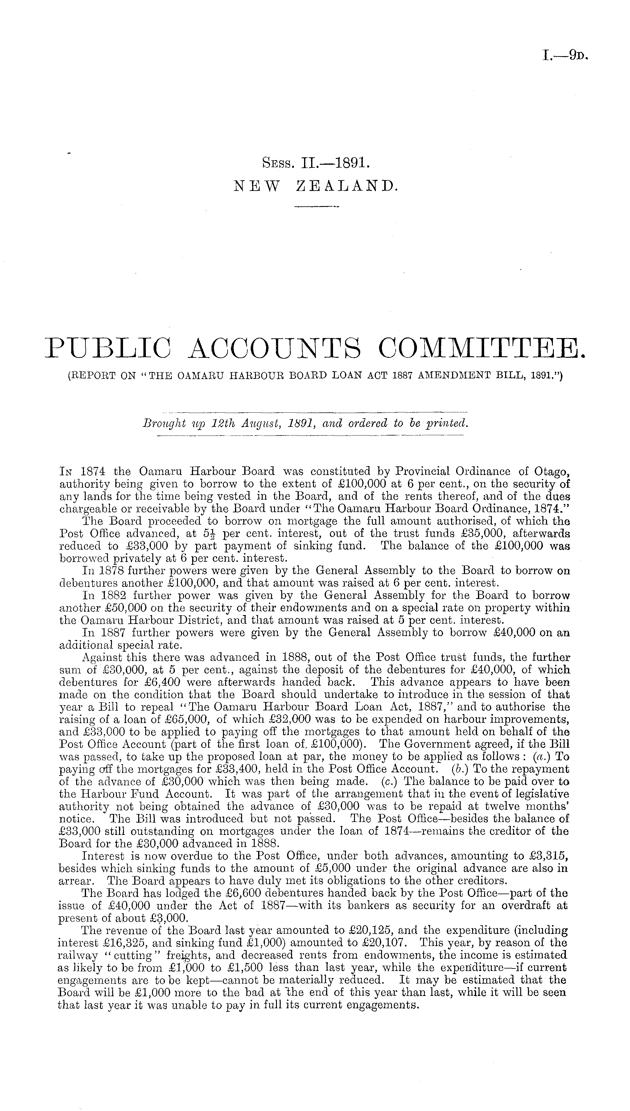 PUBLIC ACCOUNTS COMMITTEE. (REPORT ON "THE OAMARU HARBOUR BOARD LOAN ACT 1887 AMENDMENT BILL, 1891.")