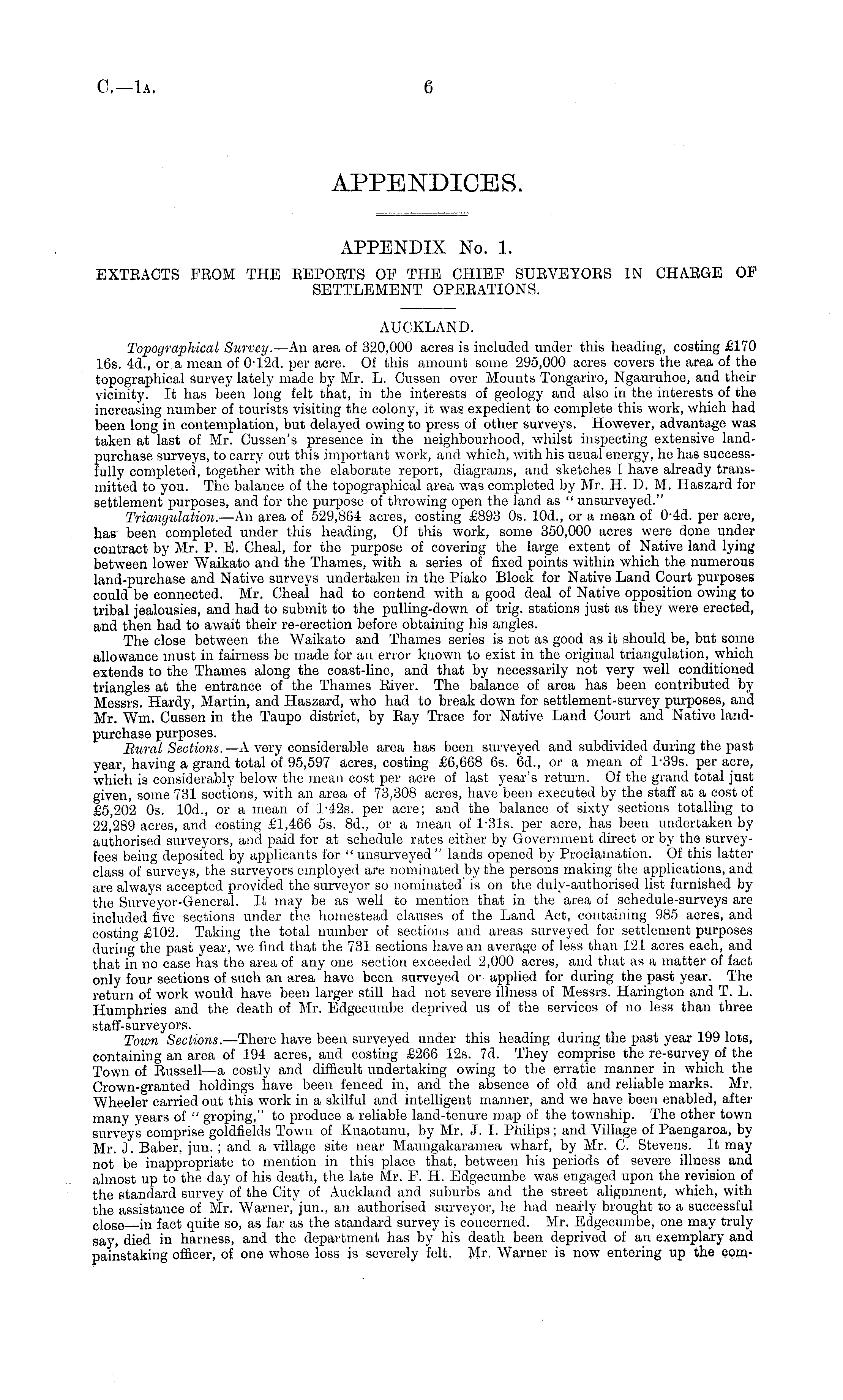APPENDIX No. 1. EXTBACTS FEOM THE EEPOETS OF THE CHIEF SUBVEYOBS IN CHAEGE OF SETTLEMENT OPEEATIONS.