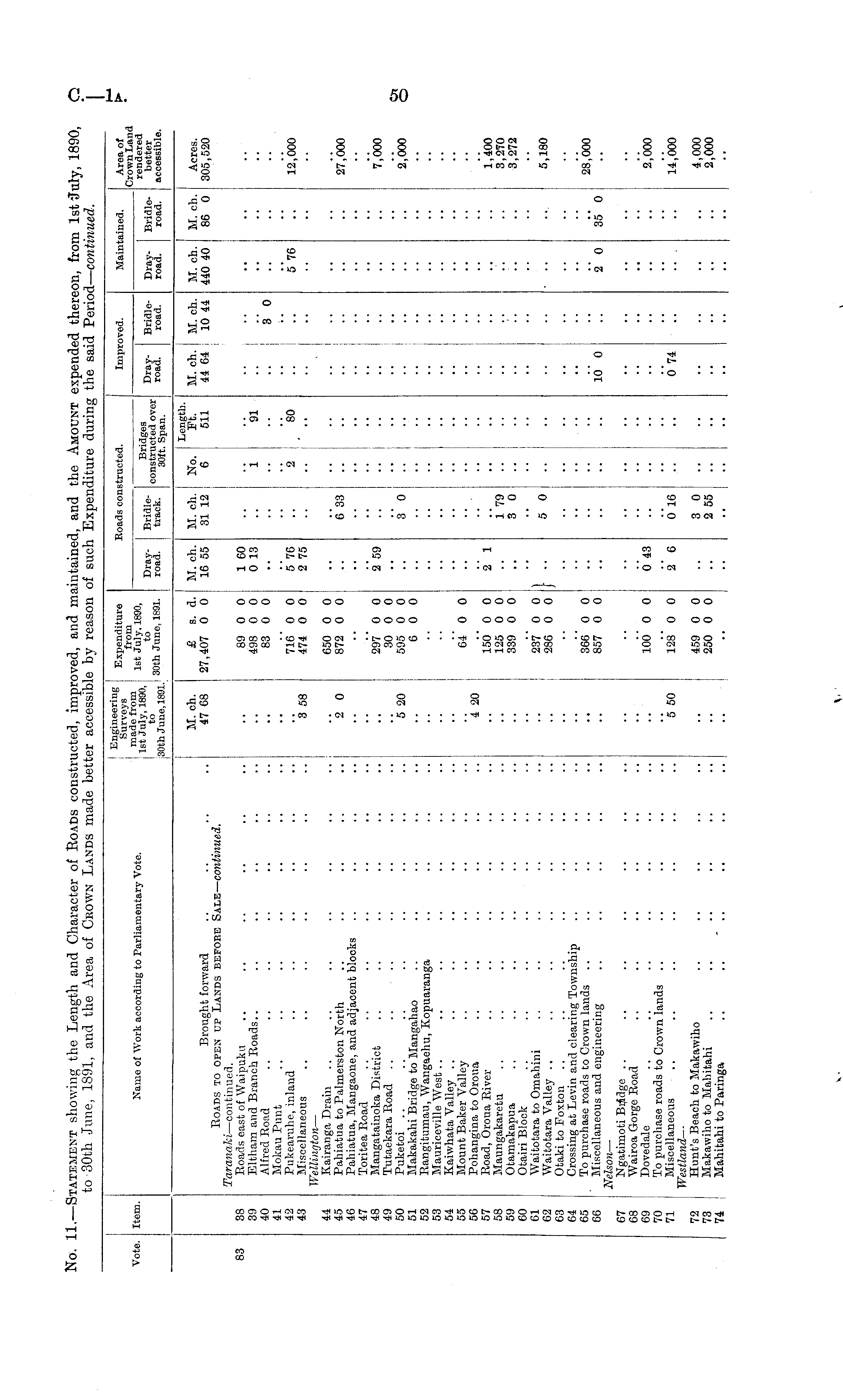 No. 11.—Statement showing the Length and Character of Roads constructed, improved, and maintained, and the Amount expended thereon, from 1st July, 1890, to 30th June, 1891, and the Area of Crown Lands made better accessible by reason of such Expenditure during the said Period— continued.