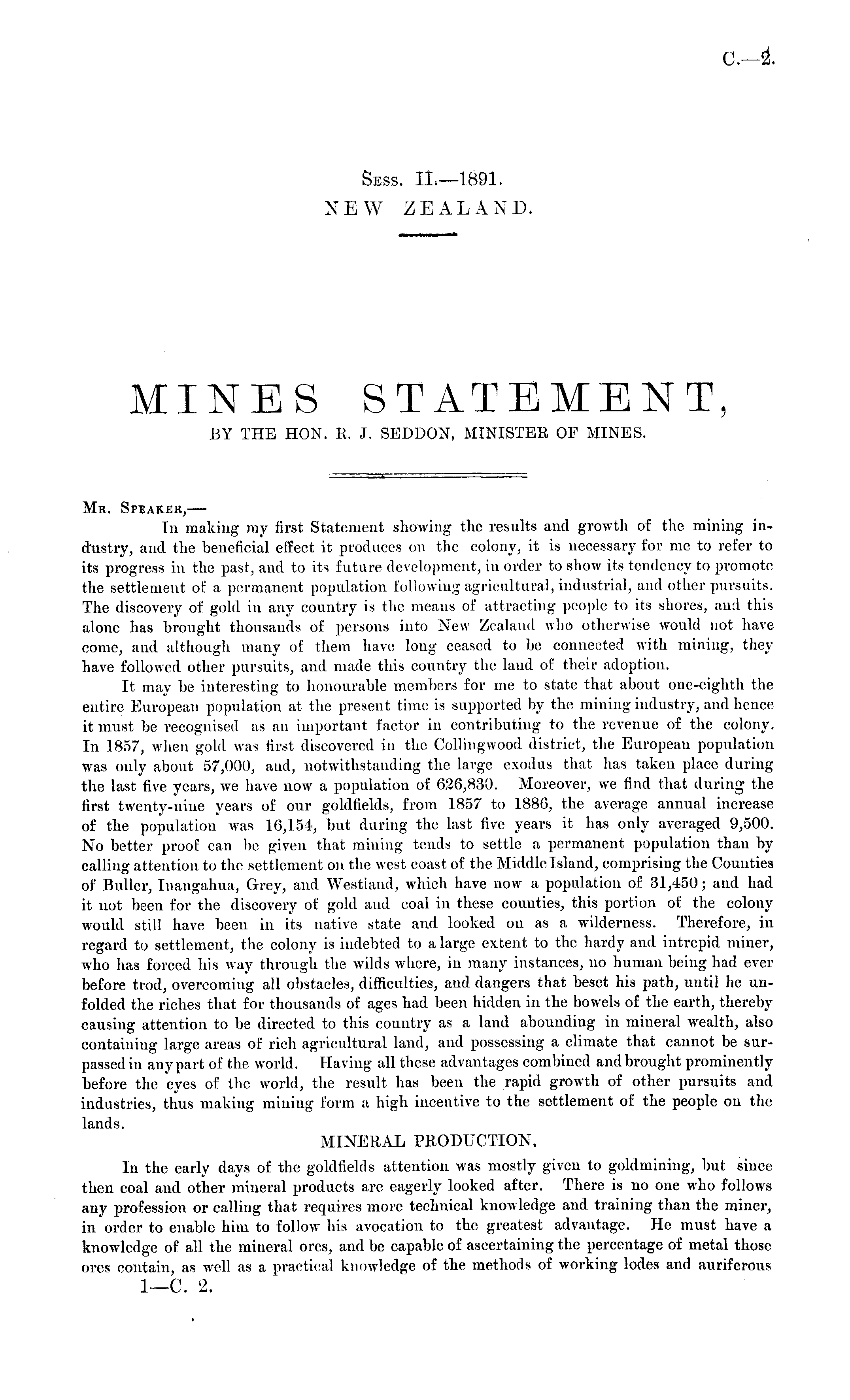 MINES STATEMENT, BY THE HON. R. J. SEDDON, MINISTER OF MINES.
