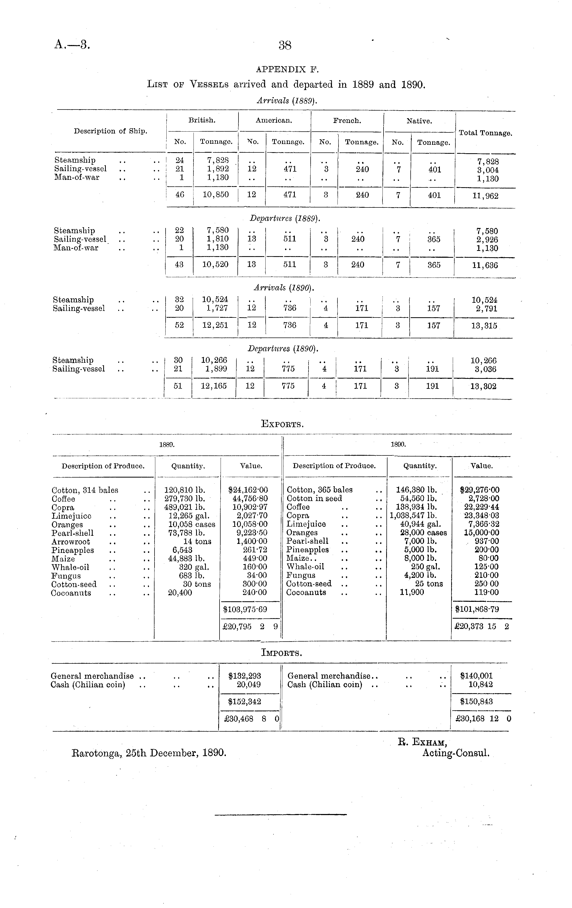 E. EXHAM, Barotonga, 25th December, 1890. Acting-Consul.