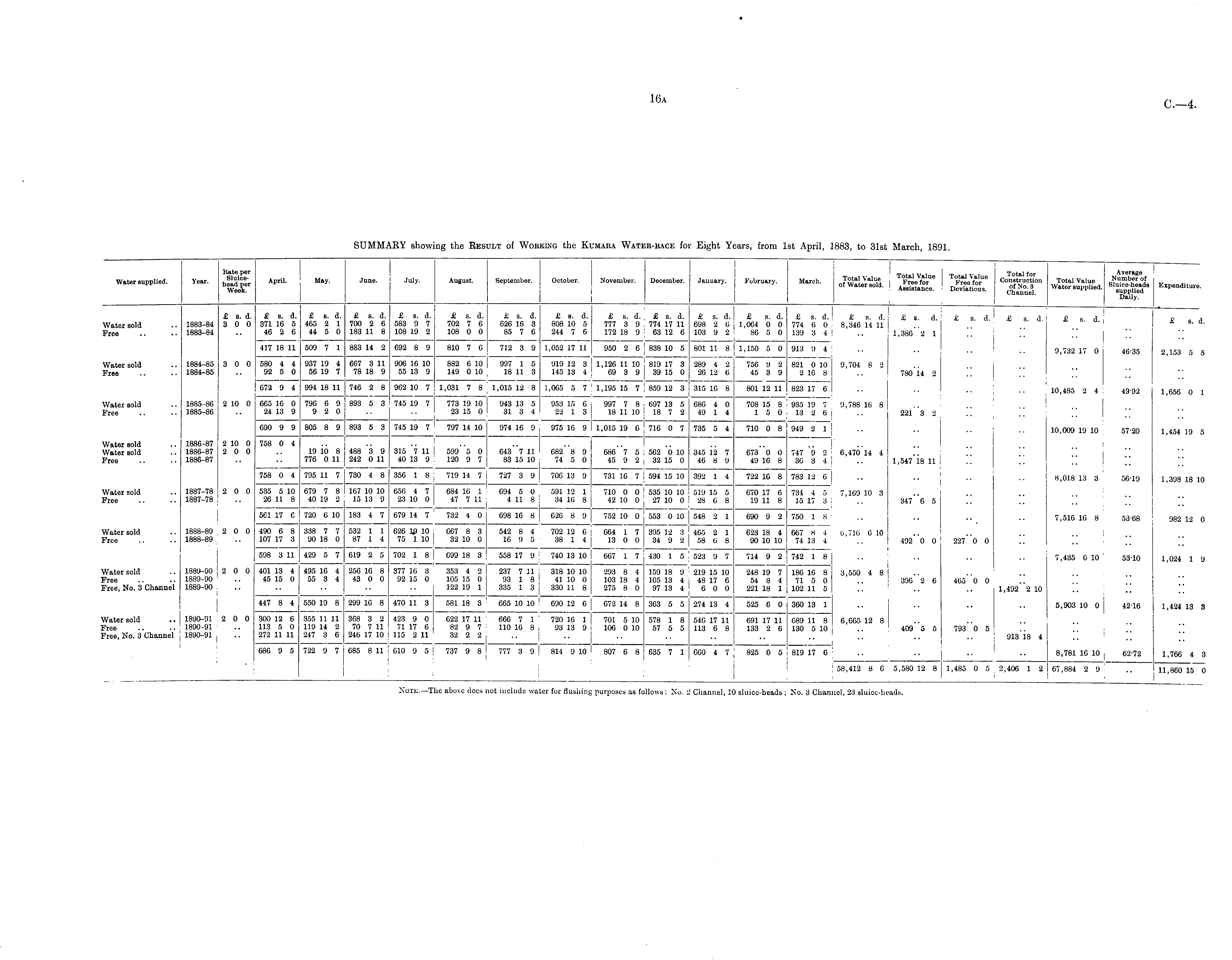 SUMMARY showing the Result of Working the Kumara Water-race for Eight Years, from Ist April, 1883, to 31st March, 1891.