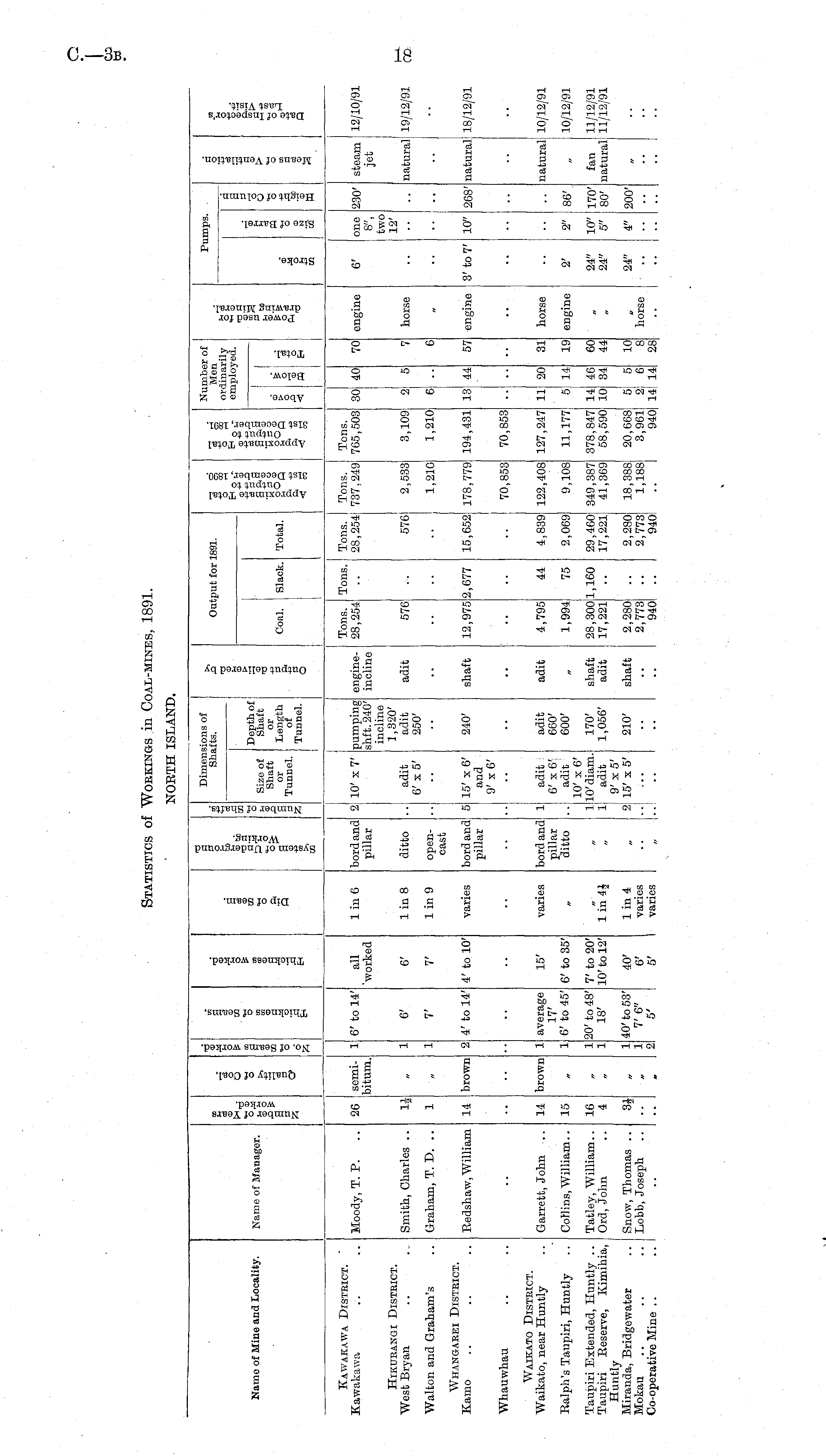 Statistics of Workings in Coal-mines, 1891. NORTH ISLAND.