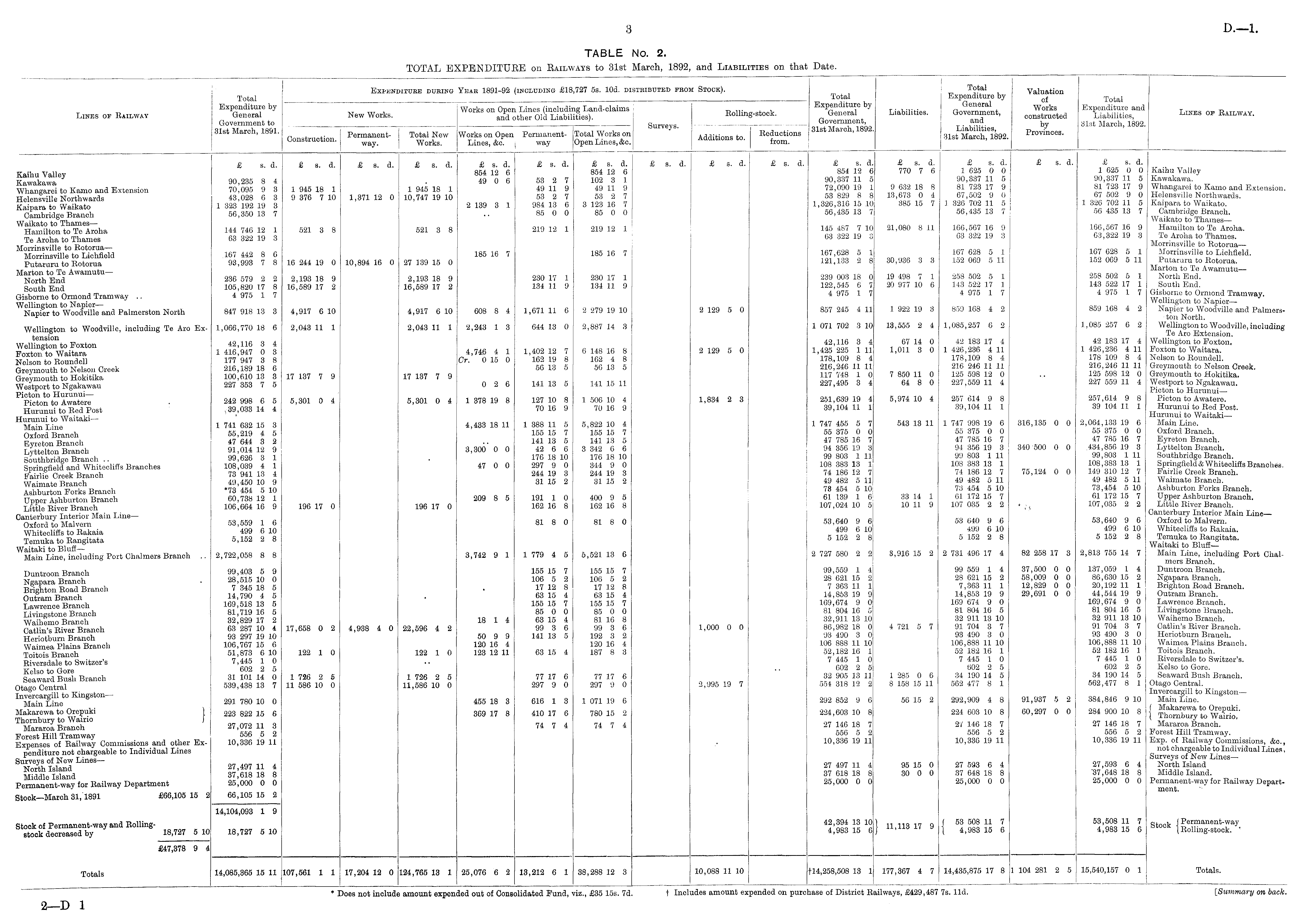 TABLE No. 2. TOTAL EXPENDITURE on Railways to 31st March, 1892, and Liabilities on that Date.