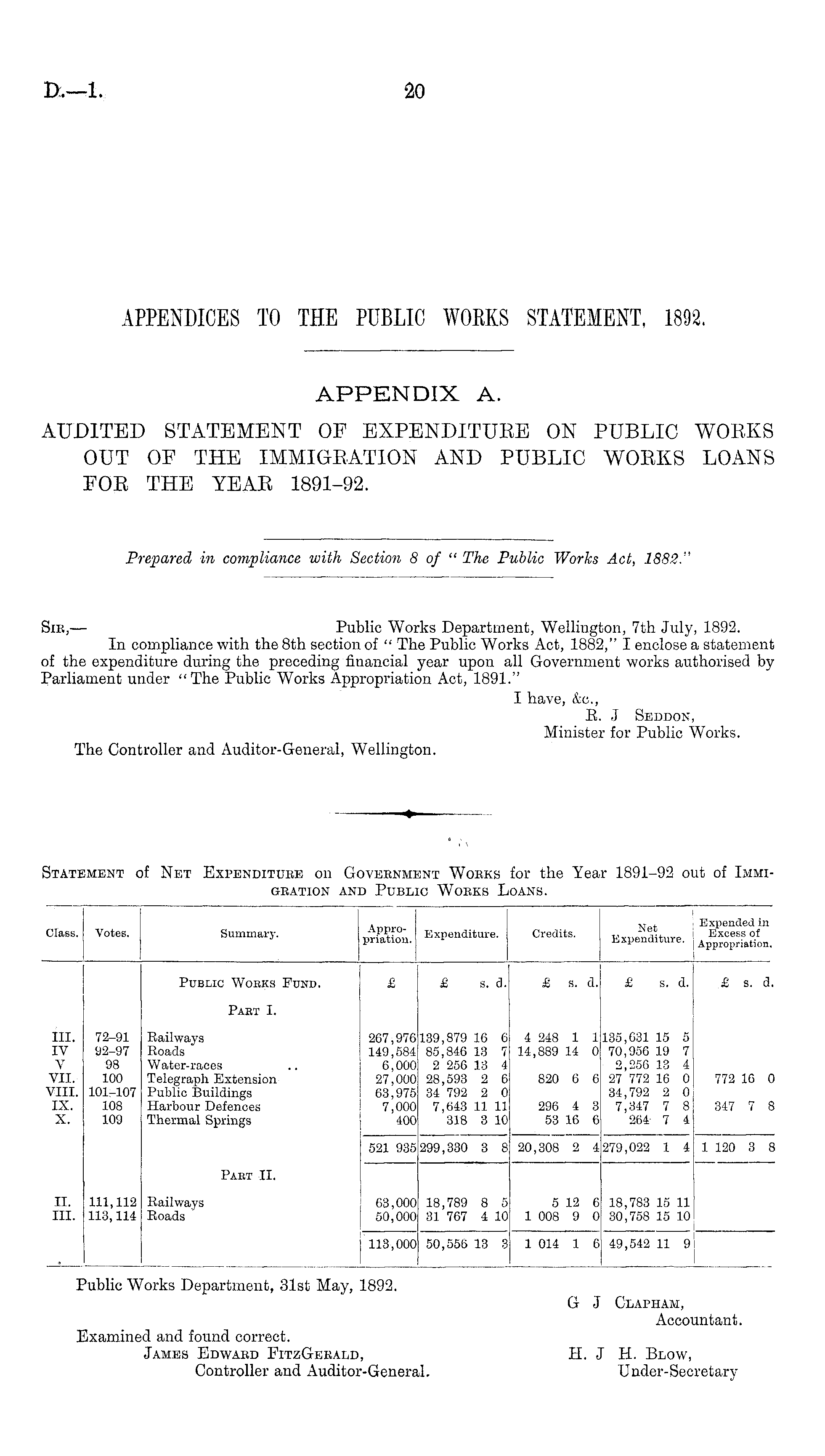 Public Works Department, 31st May, 1892. G J Clapham, Accountant. Examined and found correct. James Edwaed FitzGeeald, H. J H. Blow, Controller and Auditor-General. Under-Secretary
