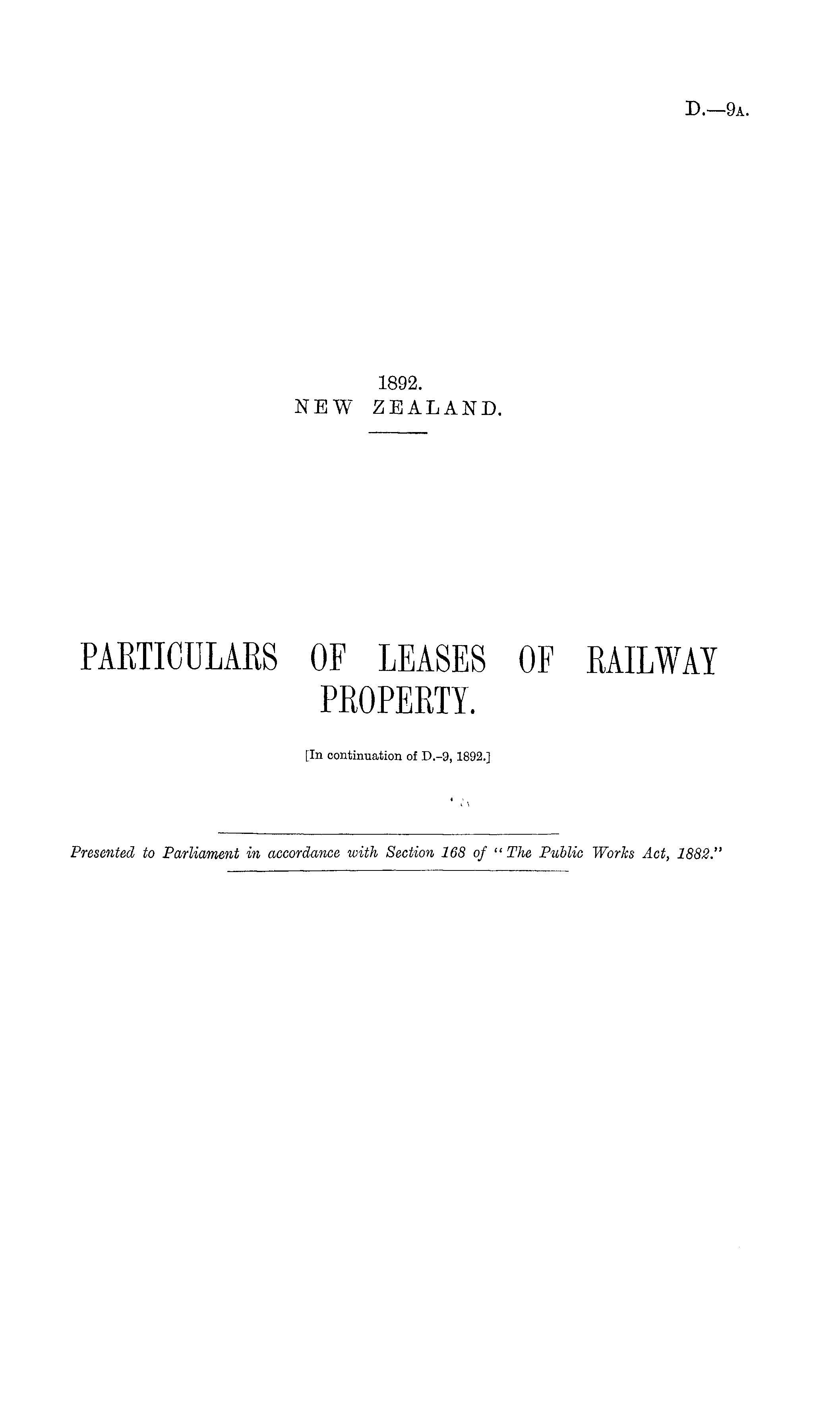 PARTICULARS OF LEASES OF RAILWAY PROPERTY. [In continuation of D.-9, 1892.]