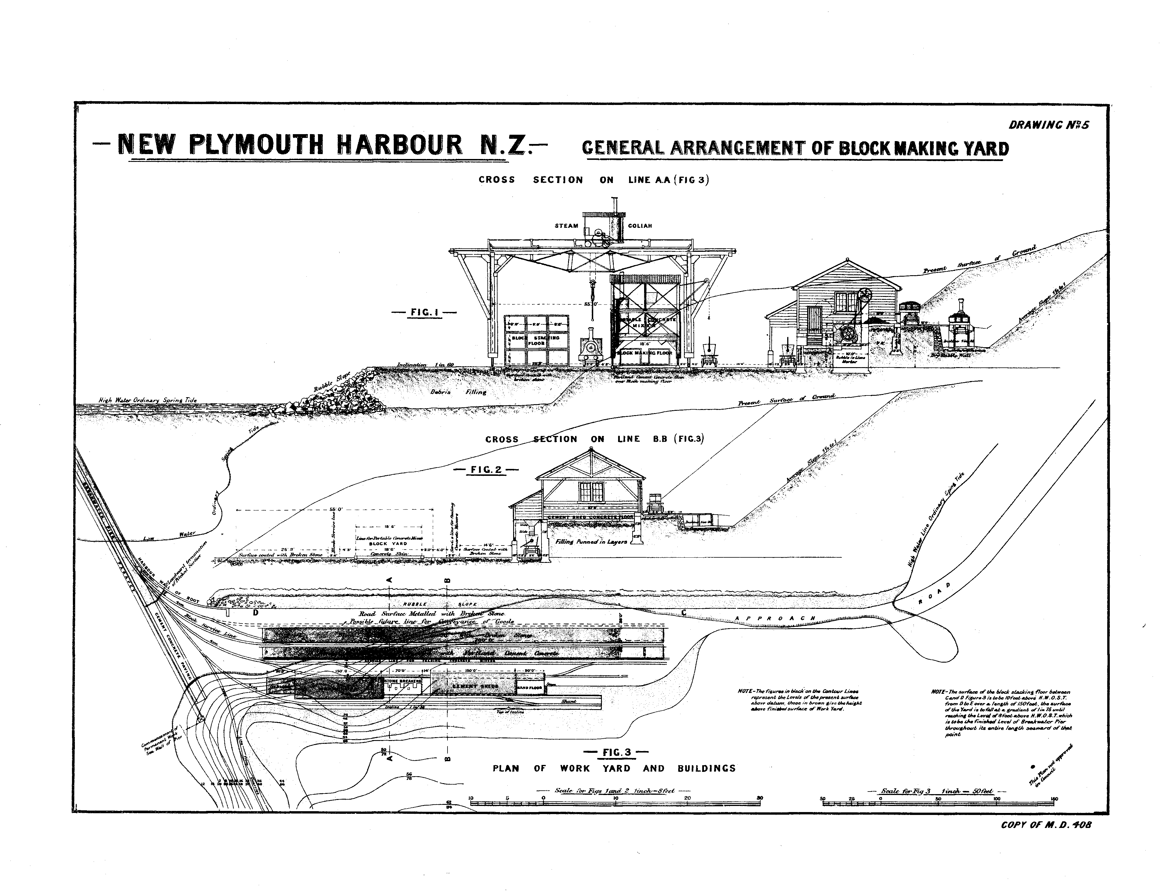 DRAWING No 5 NEW PLYMOUTH HARBOUR N.Z.- GENERAL ARRANGEMENT OF BLOCK MAKING YARD