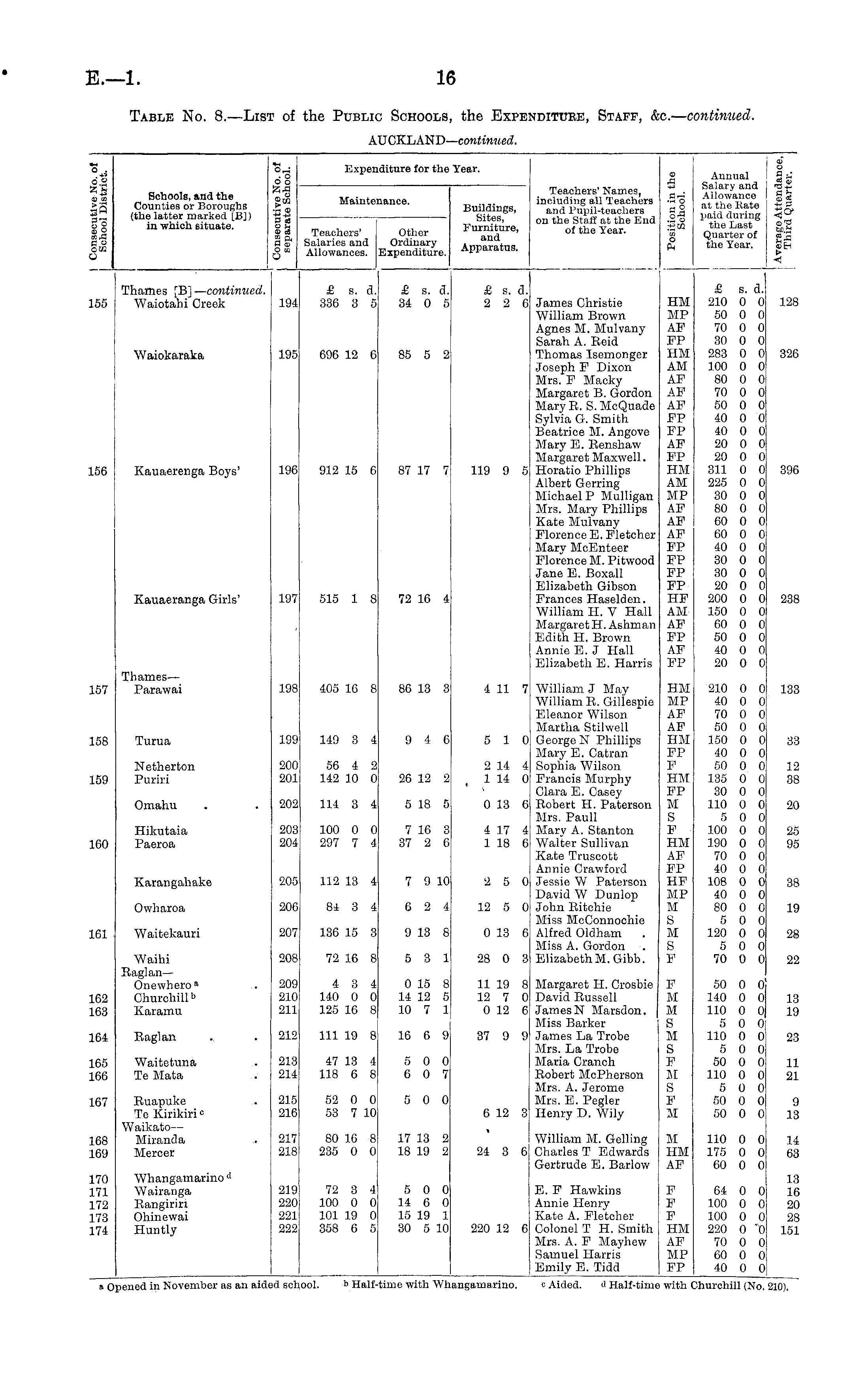 Table No. 8.—List of the Public Schools, the Expenditure, Staff, &c.— continued. AUCKLAND— continued.