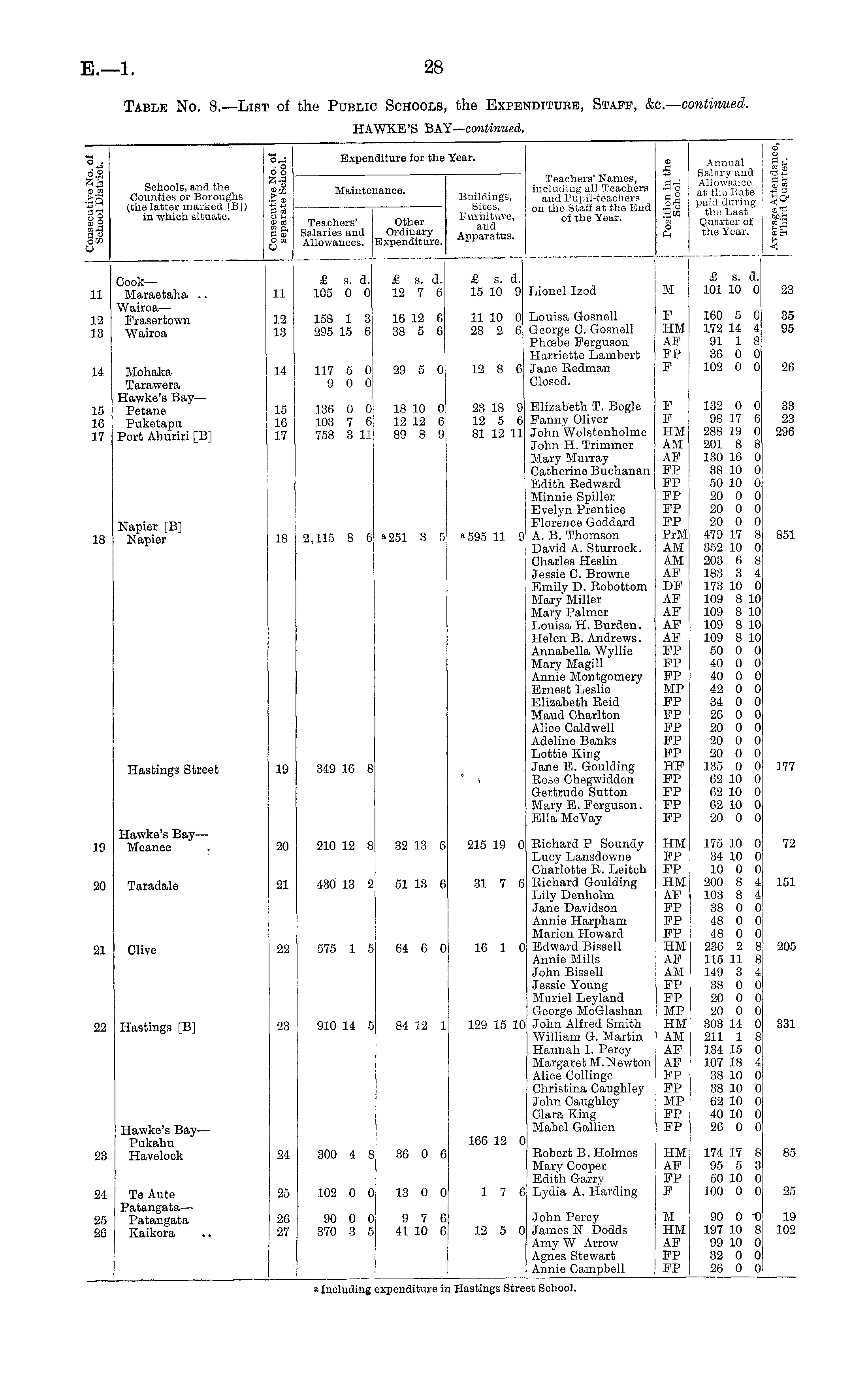 Table No. 8. —List of the Public Schools, the Expenditure, Staff, &c. — continued. HAWKE'S BAY—continued.