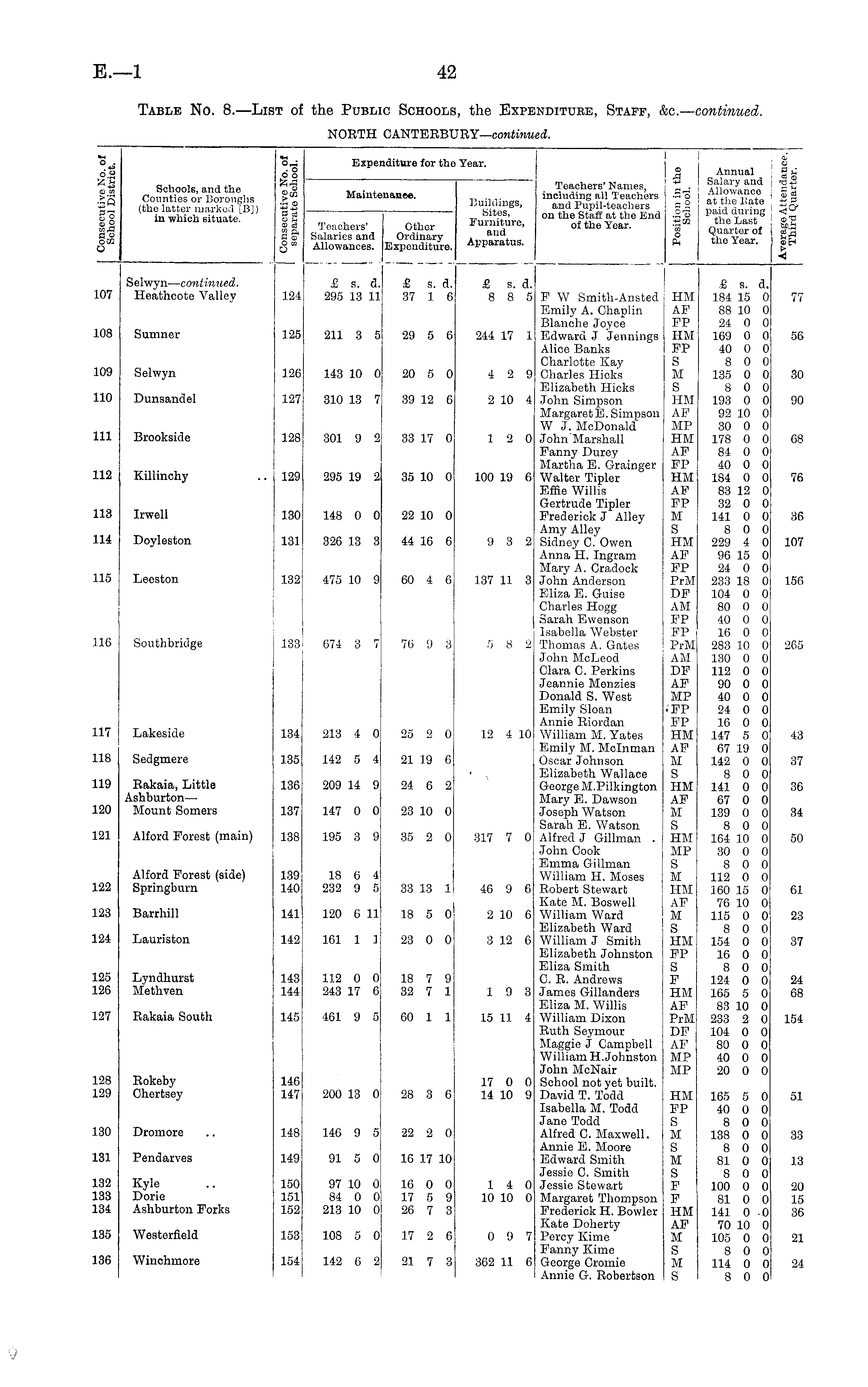 Table No. 8. —List of the Public Schools, the Expenditure, Staff, &c.— continued. NORTH CANTERBURY— continued.