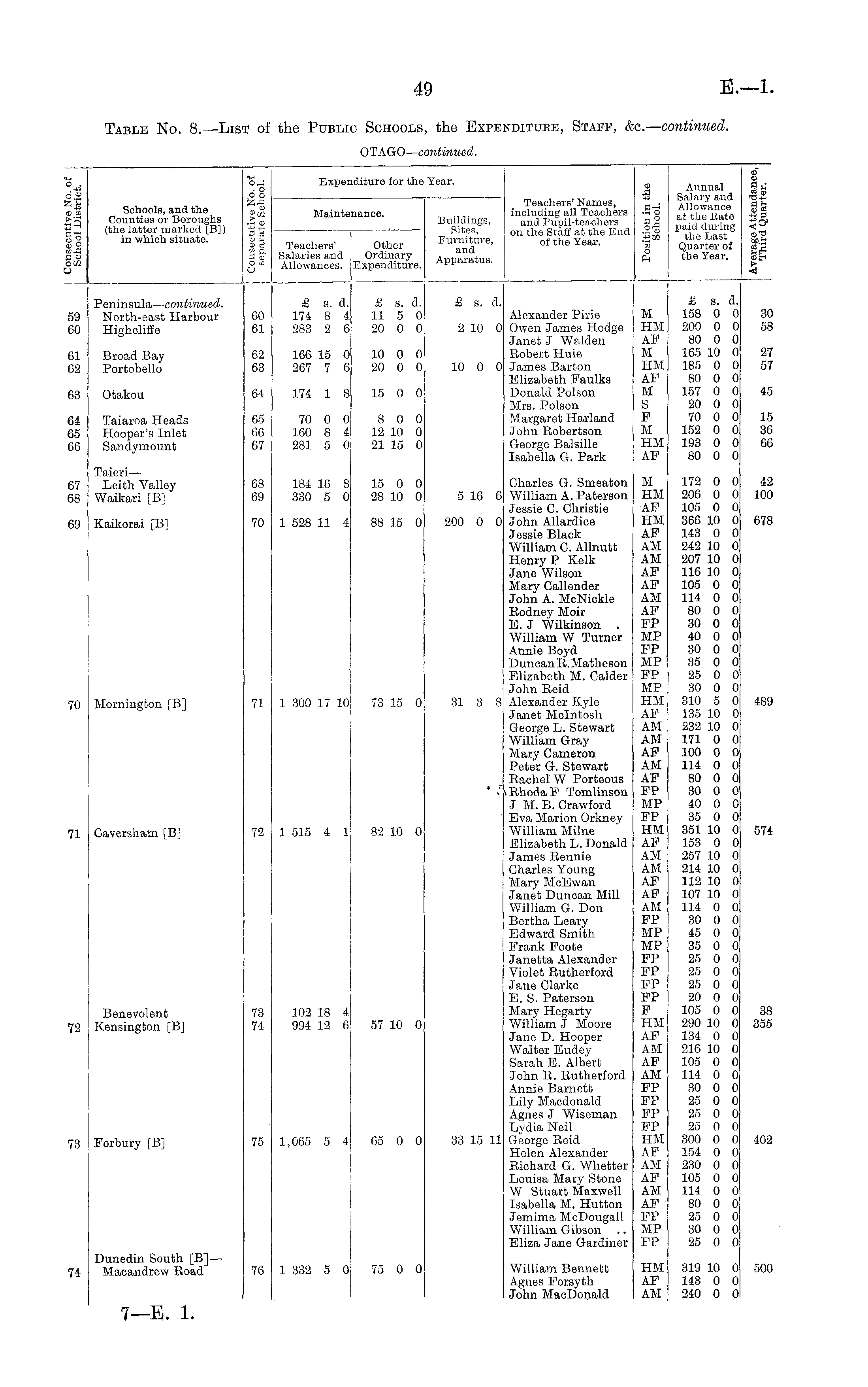 Table No. 8. —List of the Public Schools, the Expenditure, Staff, &c.— continued. OTAGO— continued.