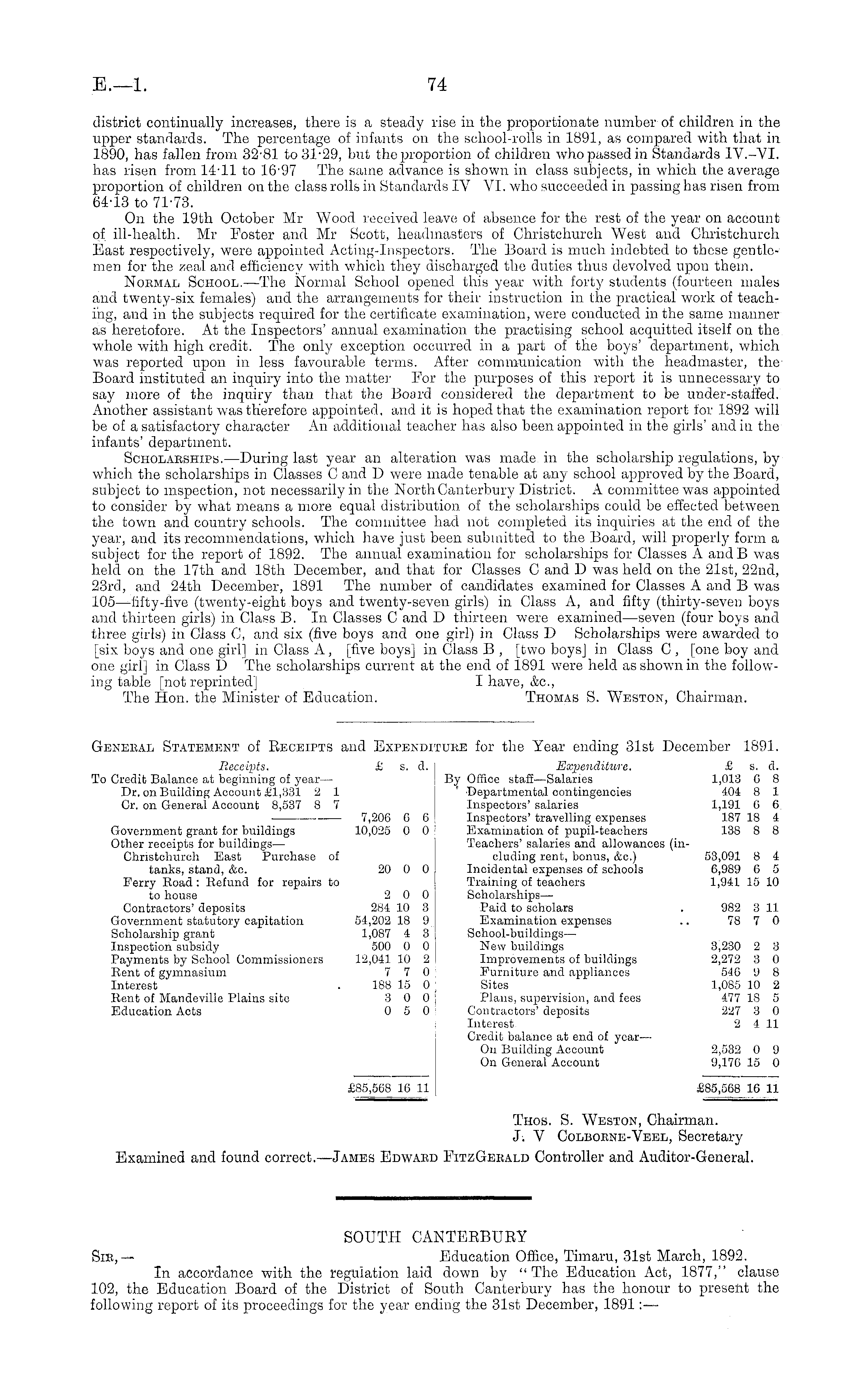 SOUTH CANTEBBUBY Sic,- Education Office, Timaru, 31st March, 1892. In accordance with the regulation laid down by "The Education Act, 1877," clause 102, the Education Board of the District of South Canterbury has the honour to present the following report of its proceedings for the year ending the 31st December, 1891: —