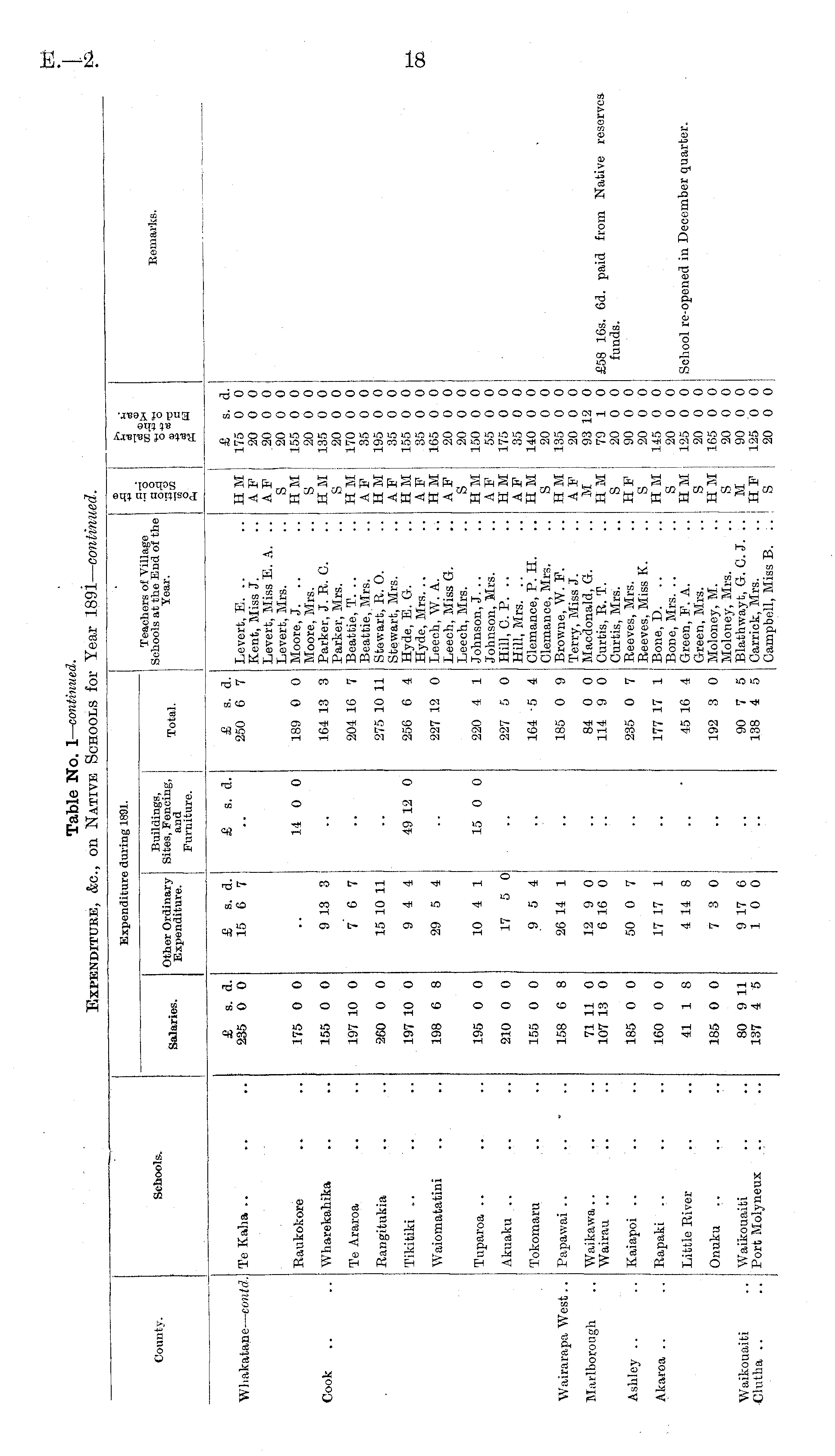Table No. 1 — continued. Expenditure, &c., on Native Schools for Year 1891— continued.