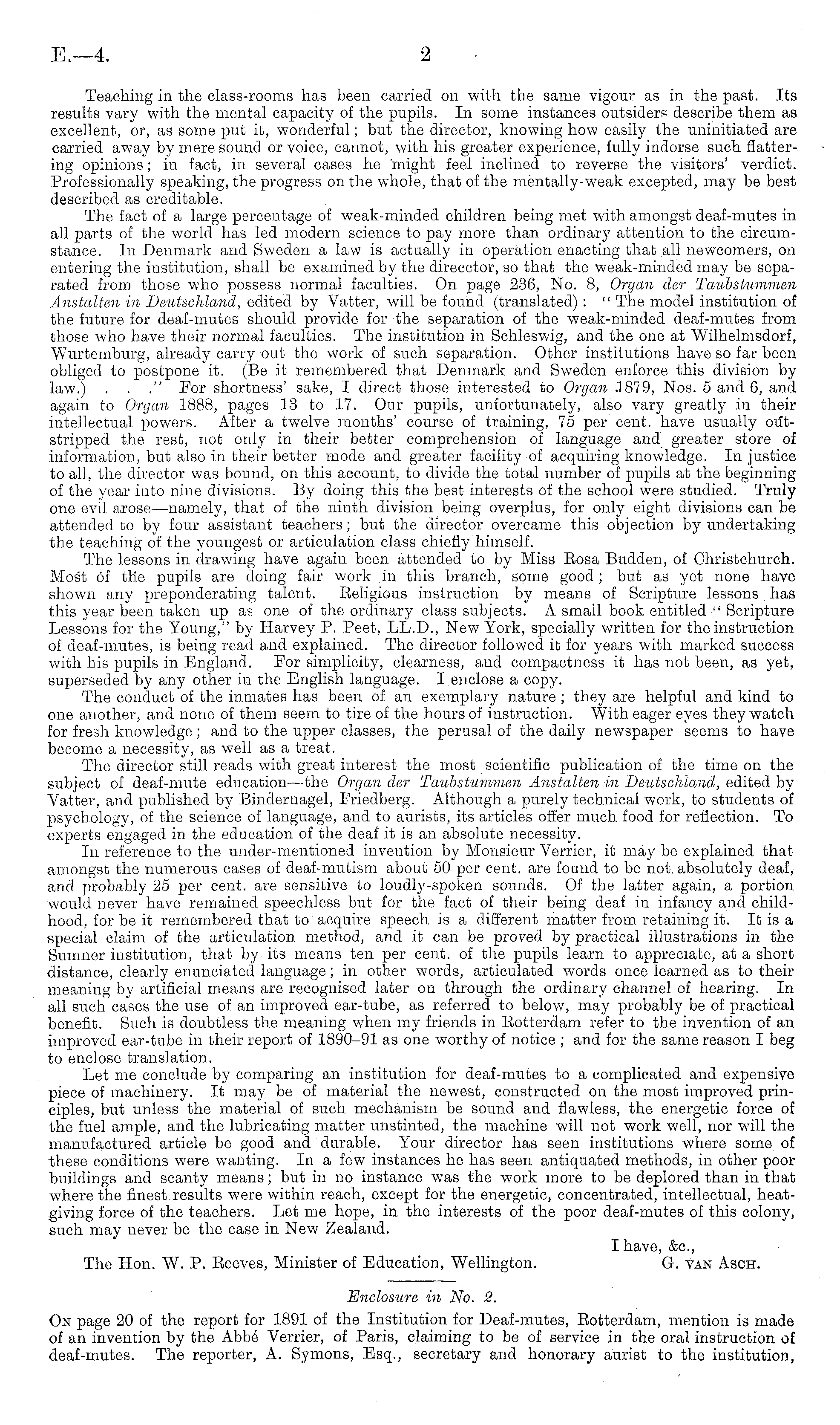 Enclosure in No. 2. On page 20 of the report for 1891 of the Institution for Deaf-mutes, Eotterdam, mention is made of an invention by the Abbe Verrier, of Paris, claiming to be of service in the oral instruction of deaf-mutes. The reporter, A. Symons, Esq., secretary and honorary aurist to the institution,