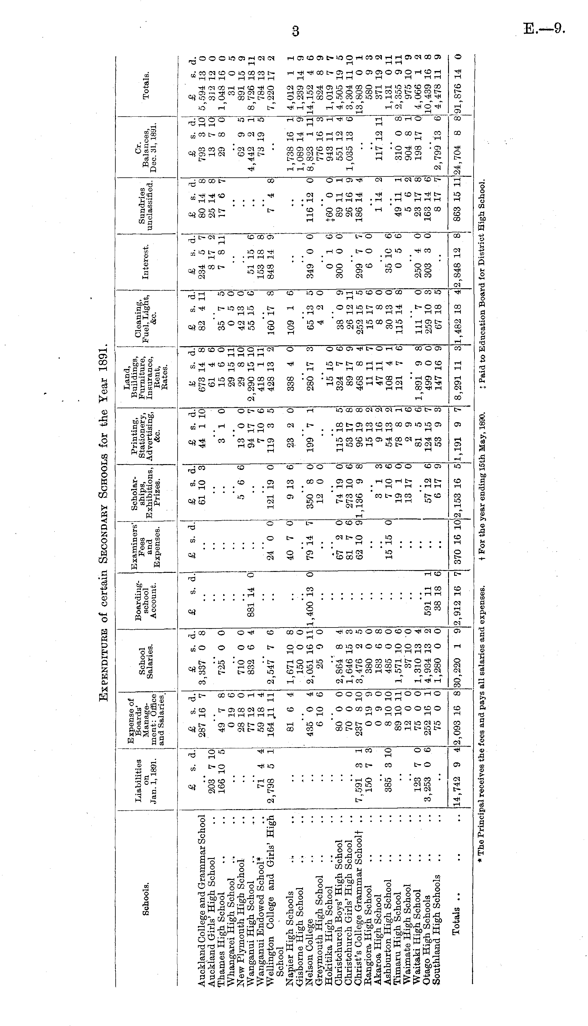 i Land, Buildings, Furniture, Insurance, Rent, Rates. Schools. Liabilities on Jan. 1,1891. Expense of Boards' Management: Office and Salaries. School Salaries. Boardingschool Account. Examiners' Fees and Expenses. Scholarships, Exhibitions, Prizes. Printing, Stationery, Advertising, &c. Cleaning, Fuel, Light, &e. Interest. Sundries unclassified. Cr. Balances, Dec. 31, 1891. Totals. Auckland College and Grammar School Auckland Girls' High School Thames High School Whangarei High School New Plymouth High School Wanganui High School Wanganui Endowed School* Wellington College and Girls' High School Napier High Schools .;. Gisborne High School Nelson College Greymouth High School Hokitika High School Christchurch Boys' High School Christchurch Girls' High School Christ's College Grammar Schoolf .. Bangiora High School Akaroa High School Ashburton High School Timaru High School Waimate High School Waitaki High School .. Otago High Schools Southland High Schools £ S. d.' 203* 7 10 166 10 5 £ s. d. 287 16 7 49 7 8 0 19 6 28 18 0 77 12 1 59 18 4 164 11 11 £ s. d. 3,337 0 8 725 0 0 710' 0 0 832 6 4 £ s. d. .. £ s. d. £ s. d. 61 10 3 5 "6 6 £ s. d. 44 1 10 3 "l 0 13 0 0 94 17 7 7 10 6 119 3 5 £ s. d. 673 14 8 61 4 6 15 6 0 29 15 11 29 8 10 2,290 15 10 418 1 11 428 13 2 £ s. d. 82 4 11 35 7 5 0 5 0 42 13 0 55 15 6 £ s. d. 234 5 7 8 17 2 7 8 11 £ s. d. 80 14 8 25 14 8 17 6 7 £ s. d. 793 3 10 13 7 10 29 8 0 G2 9 5 4,442 2 1 73 19 5 £ s. d. 5,594 13 0 312 12 0 1,048 16 0 31 0 5 891 15 9 8,726 18 11 784 13 2 7,220 17 2 881 14 Oi 51 15 6 153 18 8 848 14 9 7l' 4 4 2,798 5 1 2,547' 7 6 24 0 0 121 19 0 160 17 8 7 4 8 81 6 4 1,671 10 8 150 0 0 2,051 16 11 25 0 0 40 7 0 9 13 6 23 2 0 338 4 0 109 1 6 1,738 16 1 1,089 14 9 8,823 1 11 776 16 3 943 11 1 551 12 4 1,035 13 6 4,012 1 1 1,239 14 9 14,152 4 6 824 8 9 1,019 7 7 4,505 19 5 3,304 11 10 13,808 0 1 580 9 3 371 19 2 1,131 0 11 2,355 9 11 975 10 9 4,066 1 2 10,439 16 8 4,478 11 9 435 0 4 6 10 6 1,40013 0 79' 14 7 350 8 0 12 0 0 199 "7 1 280 17 3 65 13 5 4 2 0 349 0 0 11612 0 •• •■ 7,59l' 3 1 150 7 3 80 0 0 70 0 0 237 8 10 0 19 9 0 9 0 8 10 10 89 10 11 12 0 0 75 0 0 252 16 1 75 0 0 2,864 8 4 1,646 15 3 3,476 2 5 380 0 0 183 6 8 485 0 0 1,571 10 6 37 10 0 1,310 13 4 4,934 13 2 1,280 0 0 67 2 0 81 7 6 62 10 9 74 19 0 273 10 6 1,136 9 8 115 18 5 53 17 8 96 19 8 15 13 2 9 16 2 54 13 2 78 8 1 2 9 6 81 5 6 124 15 7 53 9 3 15 15 0 324 7 6 89 17 9 468 8 4 11 11 7 47 11 0 108 4 1 121 7 6 38 0 9 26 12 11 252 1-5 5 15 17 6 8 8 0 30 13 0 115 14 8 0 1 6 300 0 0 299 7 7 6 0 0 +60 0 0 89 11 1 26 16 9 186 14 4 385' 3 10 3 13 7 10 6 19 1 0 13 17 0 1 14 2 11712 11 1515 0 35 10 6 0 5 6 49 11 1 5 6 2 23 17 8 163 14 6 8 17 7 310 0 8 904 8 1 198 17 0 1 123' 7 0 3,253 0 6 59l'il 1 38 18 6 1 57 12 6 6 17 9 1,891 9 8 499 0 0 147 16 9 111 7 0 259 10 3 67 18 5 250 4 0 303 3 0 2,799 13 6 Totals .. 2,912 16 7 370 16 10 2,153 16 5 1,191 9 7 14,742 9 4! 2,093 16 8 30,220 1 9 8,291 11 3 1,482 18 4 2,848 12 8 863 15 11 24,704 8 8^ 91,876 14 * The Principal receives the fees and pays all salaries and expenses. t For the year ending 15th May, 1890. : Paid to Education Board for District High School.