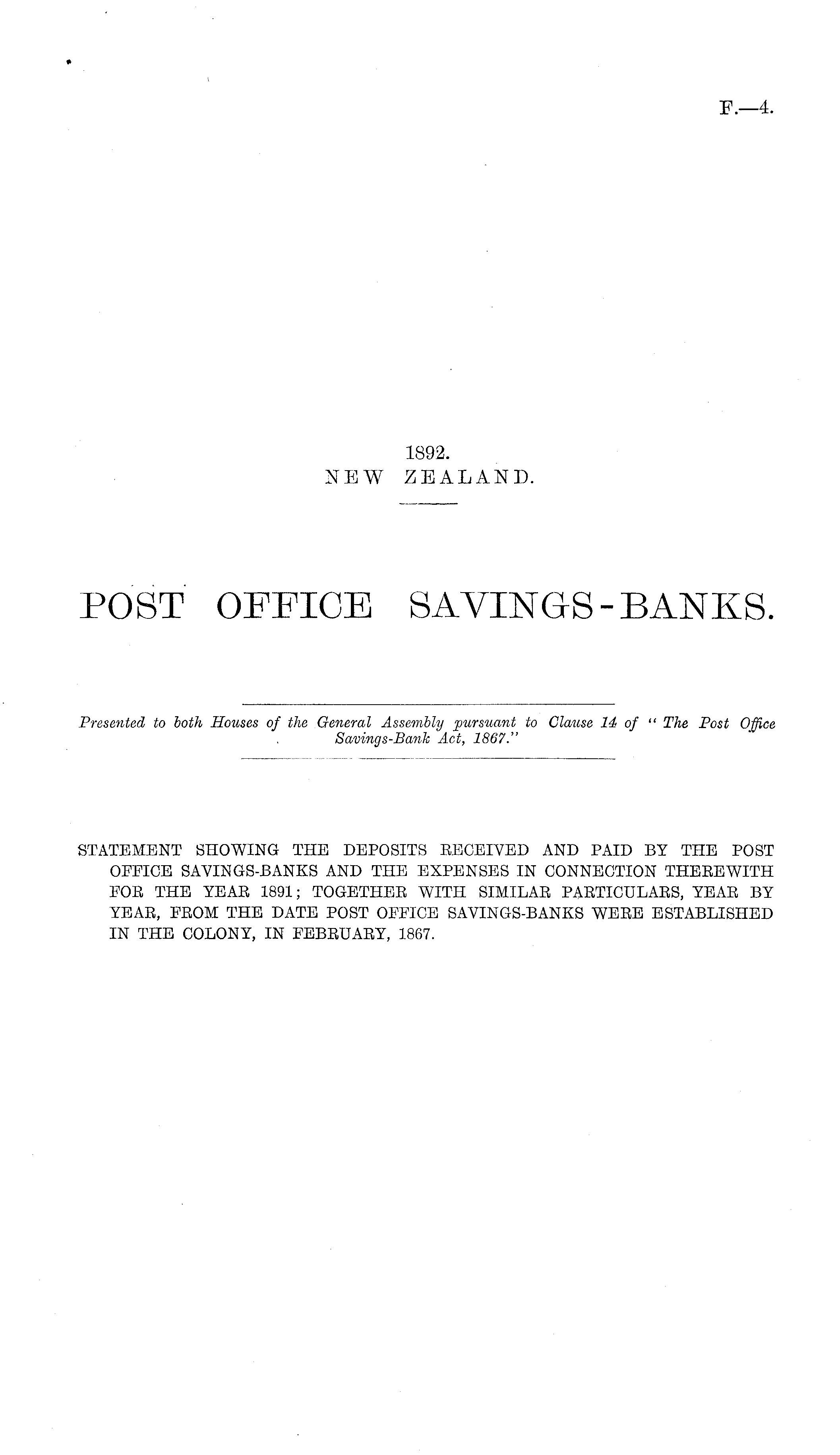 Presented to loth Houses of the General Assembly pursuant to Clause 14 of " The Post Office Savings-Bank Act, 1867."