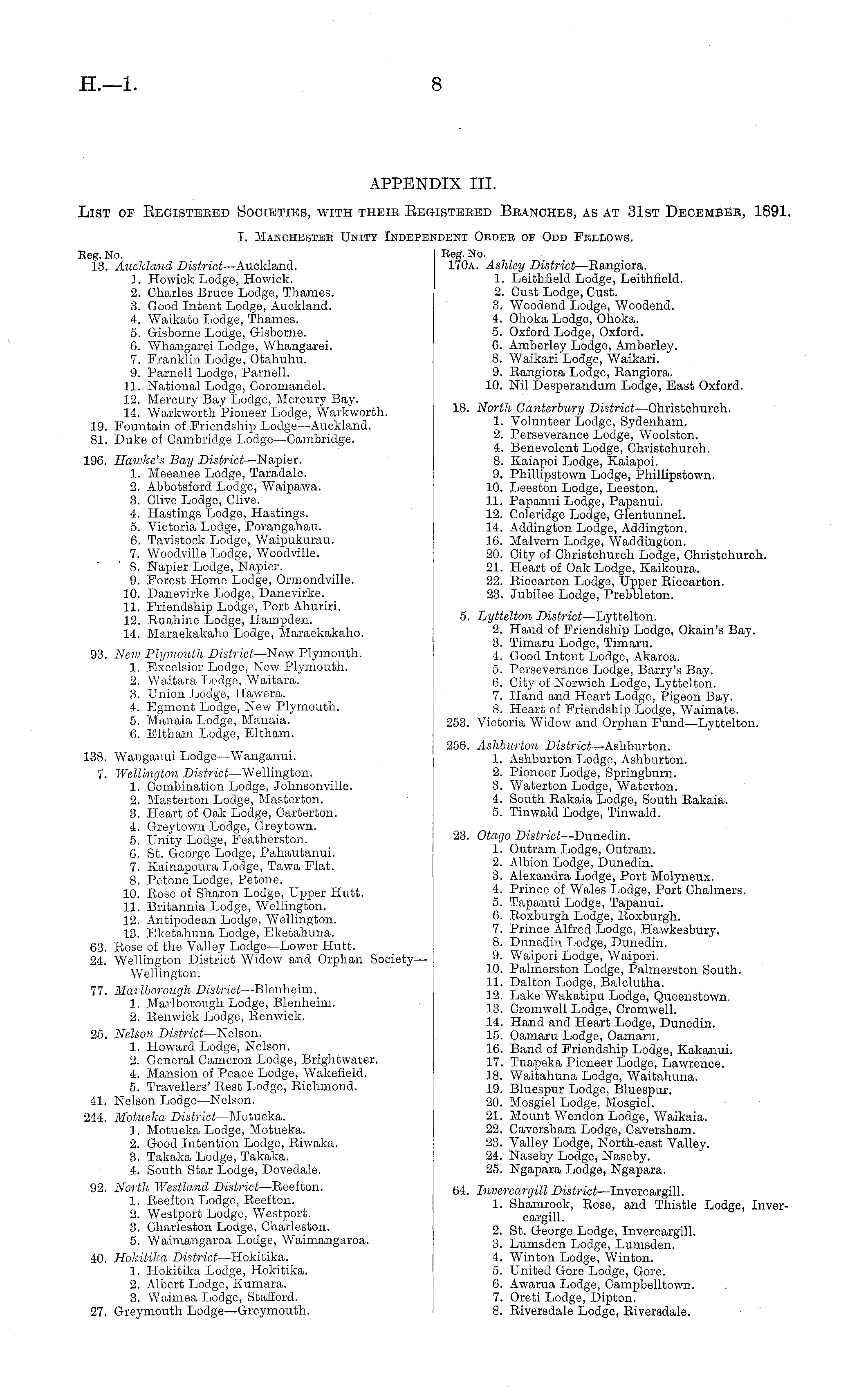 APPENDIX III. List of Registered Societies, with their Registered Branches, as at 31st December, 1891. I. Manchester Unity Independent Order of Odd Fellows.