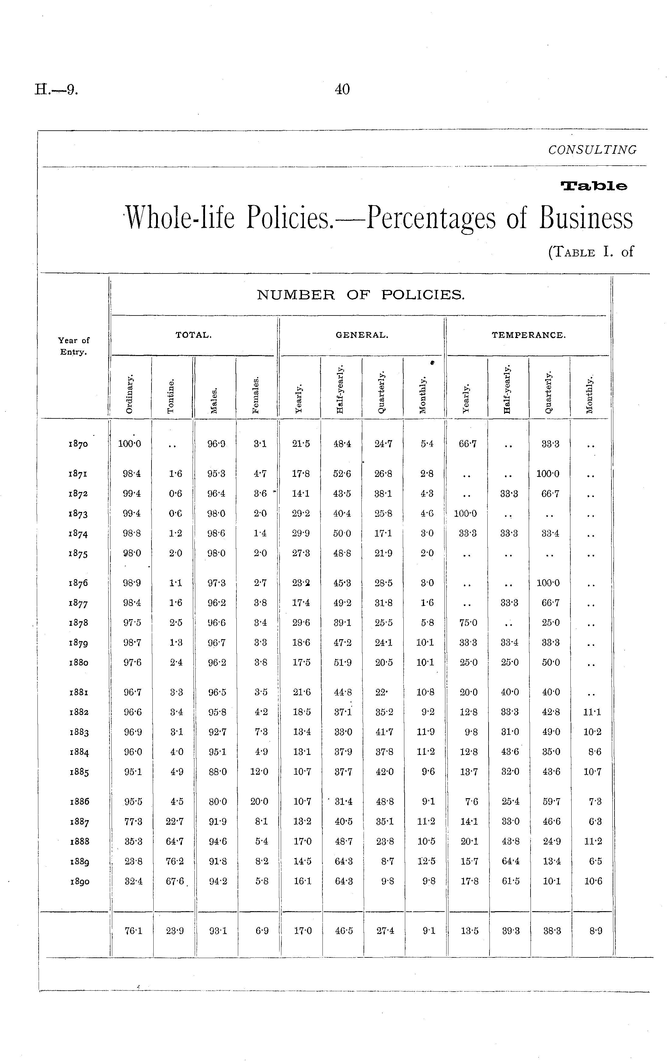 CONSULTING Table Whole-life Policies.—Percentages of Business (Table I. of