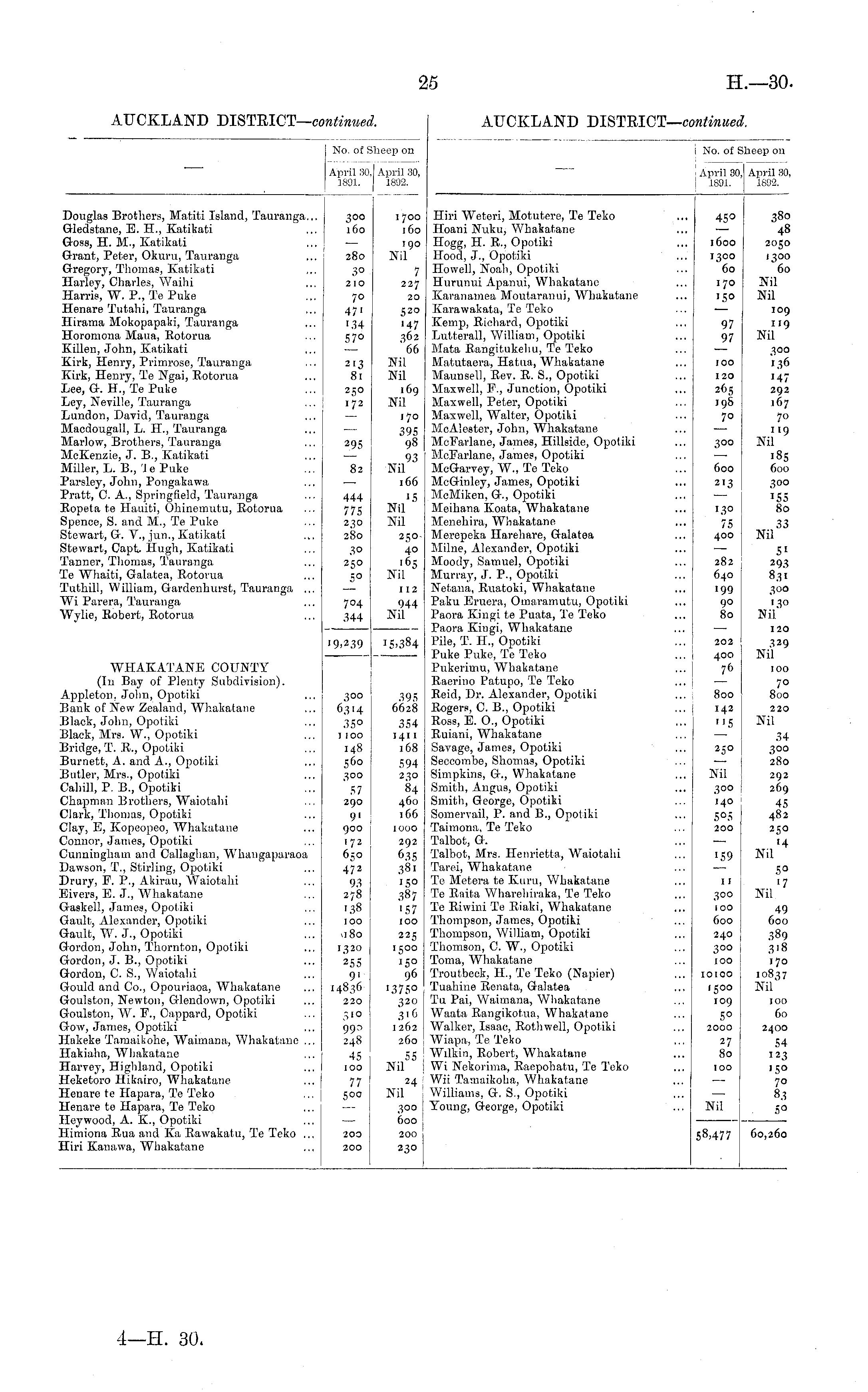 no. of s: .beep on .1 April 30, 1892. April 30,1 1891. Douglas Brothers, Matiti Island, Tauranga... Gledstane, E. II., Katikati Goss, H. M., Katikati Grant, Peter, Okuru, Tauranga Gregory, Thomas, Katikati Harley, Charles, Waihi Harris, W. P., Te Puke Henare Tutahi, Tauranga Hirama Mokopapaki, Tauranga Horomona Maua, Botorua Killen, John, Katikati Kirk, Henry, Primrose, Tauranga Kirk, Henry, Te Ngai, Rotorua Lee, G. H., Te Puke Ley, Neville, Tauranga Lundon, David, Tauranga Macdougall, L. IL, Tauranga Marlow, Brothers, Tauranga McKenzie, J. B., Katikati Miller, L. B.,'J e Puke Parsley, John, Pongakawa Pratt, C. A., Springfield, Tauranga Ropeta te Hauiti, Ohinemutu, Rotorua Spence, S. and M., Te Puke Stewart, G. V., jun., Katikati Stewart, Capt. Hugh, Katikati Tanner, Thomas, Tauranga Te Whaiti, Galatea, Rotorua Tuthill, William, Gardenhurst, Tauranga ... Wi Parera, Tauranga Wylie, Robert, Rotorua 300 160 1700 160 280 190 Nil 3° 210 7 227 20 70 47' '34 57° 520 '47 362 '66 Nil Nil 169 Nil 170 395 98 93 Nil 166 213 81 25° 172 295 82 444 775 230 280 3° 25° 5° '5 Nil Nil 250 40 '65 Nil 112 704 344 944 Nil WHAKATANE COUNTY (In Bay of Plenty Subdivision). Appleton, John, Opotiki Bank of New Zealand, Whakatane Black, John, Opotiki Black, Mrs. W., Opotiki Bridge, T. R., Opotiki Burnett, A. and A., Opotiki Butler, Mrs., Opotiki CabiH, P. B., Opotiki Chapman Brothers, Waiotahi Clark, Thomas, Opotiki Clay, E, Kopeopeo, AVhakatane Connor, James, Opotiki Cunningham and Callaghan, Whangaparaoa Dawson, T., Stirling, Opotiki Drury, F. P., Akirau, Waiotahi Eivers, E. J., AVhakatane Gaskell, James, Opotiki Gault, Alexander, Opotiki Gault, W. J., Opotiki Gordon, John, Thornton, Opotiki Gordon, J. B., Opotiki Gordon, C. S., Waiotahi Gould and Co., Opouriaoa, Whakatane Goulston, Newton, Glendown, Opotiki Goulston, W. F., Oappard, Opotiki Gow, James, Opotiki Hakeke Tamaikohe, Waimana, Whakatane ... Hakiaha, Whakatane Harvey, Highland, Opotiki Heketoro Hikairo, Whakatane Henare te Hapara, Te Teko Henare te Hapara, Te Teko Heywood, A. K., Opotiki Himiona Rua and Ka Rawakatu, Te Teko ... Hiri Kanawa, Whakatane '9.239 15,384 300 6314 3.5° i 100 148 560 300 57 290 9.: 900 : 172 \ 650 472 93 278 '38 100 -180 395 6628 354 1411 168 594 23° 84 460 166 1000 292 635 381 '5° 387 '57 100 225 1500 '5° 96 '375° 320 316 1262 260 1320 255 9' 14836 220 510 99 D 248 45 ' 100 55 Nil 77 500 24 Nil 300 600 200 200 200 23°