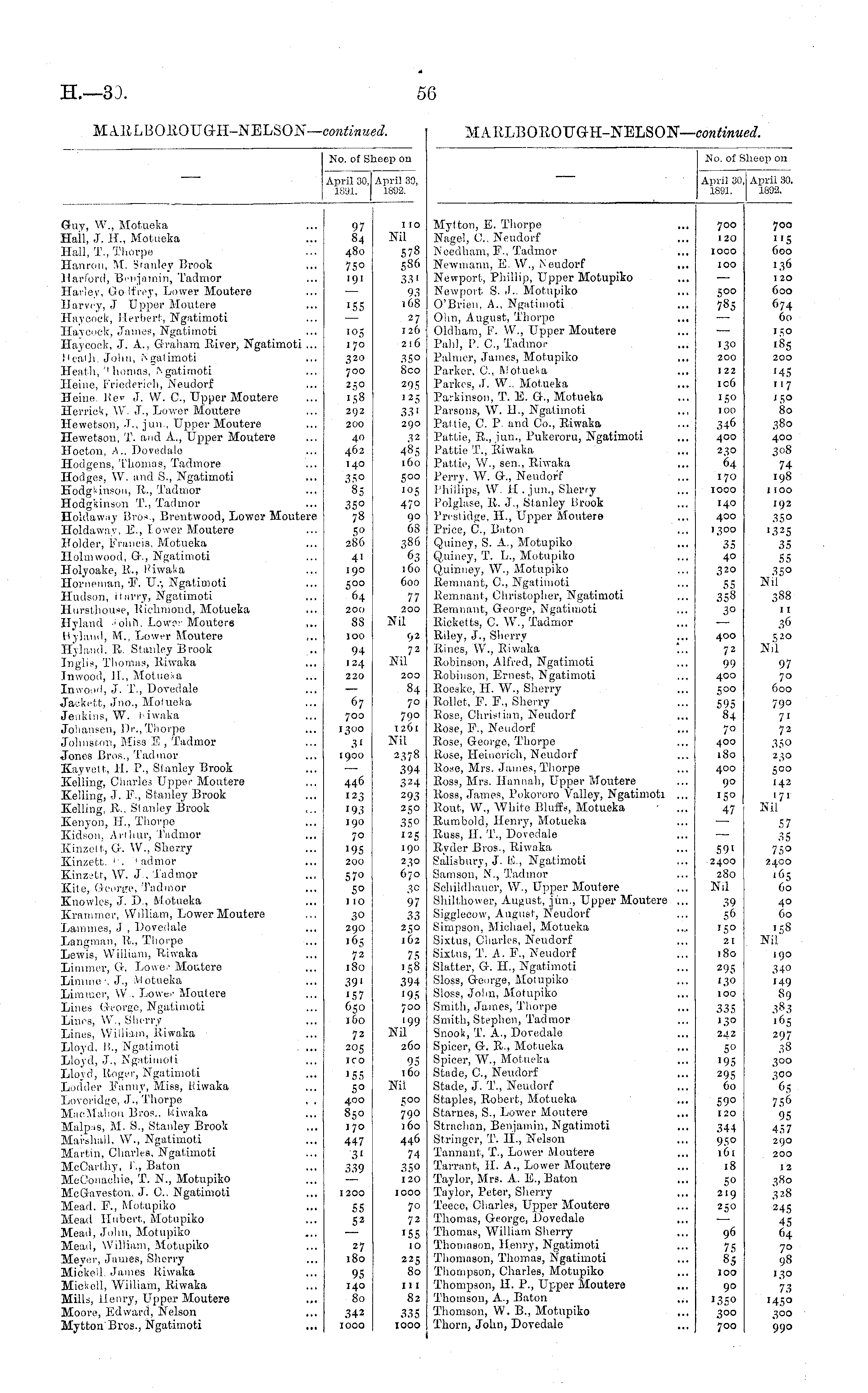 No. of Sheop 011 April 30 1891. April 30. 1892. Mytton, E. Thorpe Nngel, C Neudoff Needham, J , .. Tadmor Newmann, E. W., Neudorf Newport, Phillip, Upper Motupiko Newport S. .).. Motupiko O'Brien, A., Ngatimoti Ohn, August, Thorpe Oldham, F. W., Upper Moutere Pahl, P. 0., Tadmor Palmer, James, Motupiko Parker, 0., Motueka Parkes, J. W.. Motucka Parkinson, T. E. G-., Motucka Parsons, W. H., Ngatimoti Pallie, C. P. and Co., Eiwaka Patlie, R., jun., Pukeroru, Ngatimoti Pattie T., Riwaka Pattie, W., sen., Riwaka Perry. W. O., Neudorf Phillips, W. H .jun., Sherry Polglase, E. J., Stanley Brook Prestidge, 11., Upper Moutere Price, C, Baton Quiney, S. A., Motupiko Q.uiney, T. L., Matupiko Quinney, W., Motupiko Remnant, C, Ngatimoti Remnant, Christopher, Ngatimoti Remnant, George, Ngatimoti Ricketts, C. W., Tadmor Riley, J., Sherry Rincs, VV r ., Riwaka Robinson, Alfred, Ngatimoti Robinson, Ernest, Ngatimoti Roesfce, H. W., Sherry Bollet, F. F., Sherry Eose, Christian, Neudorf Rose, P., Neudorf Rose, George, Thorpe Rose, Heincrich, Neudorf Rose, Mrs. James, Thorpe Ross, Mrs. Hannah, Upper Moutere Ross, .Tames, Pokororo Valley, Ngatimoti ... Rout, VV., White Bluffs, Motueka • ... Rumbold, Henry, Motueka Rues, H. T., Dovedale Ryder Bros., Riwuka Salisbury, J. K., Ngatimoti Samson, N., Tadmor Scliildhauer, W\, Upper Moutere Shilthower, August, iun., Upper Moutere ... Sigglecow, August, Neudorf Simpson, Michael, Motueka Sixtus, Charles, Neudorf Sixtus, T. A. F., Neudorf Slatter, G. H., Ngatimoti Sloss, G-corge, Motupiko Sloss, John, Motupiko Smith, James, Thorpe Smith, Stephen, Tadmor Snoot, T. A., Dovedale Spicer, G. R., Motueka Spioer, W., Motueka Stade, C, Neudorf Stade, J. T., Neudorf Staples, Robert, Motueka Starnes, S., Lower Moutere Strachan, Benjamin, Ngatimoti Stringer, T. II., Nelson Tannant, T., Lower Moutere Tarrant, II. A., Lower Moutore Taylor, Mrs. A. E., Baton Taylor, Peter, Sherry Teeeo, Charles, Upper Moutere Thomas, George, i)ovedale Thomas, William Sherry Thomason, Henry, Ngatimoti Tiiomason, Thomas, Ngatimoti Thompson, Charles, Motupiko Thompson, II. P., Upper Moutere Thomson, A., Baton Thomson, W. B., Motupiko Thorn, John, Dovedale 700 120 1000 IOO 500 785 130 200 122 ic6 '50 IOO 346 400 230 64 170 1000 140 400 1300 35 40 320 55 358 3° 400 7 2 99 400 5°° 595 84 7° 400 180 400 90 "5° 47 700 "5 600 i.,6 120 600 674 60 15° 185 200 '45 117 '5° 80 380 400 308 74 198 1100 192 35° 35 55 35° Nil 588 1 1 36 520 Nil 97 70 600 790 7i 72 350 2 3° 500 142 17] Nil 59 1 2400 280 Nil 57 35 75O 2400 'f'5 60 40 60 158 Nil 39 56 15° 21 180 2 95 130 100 335 130 242 5° '95 295 60 59° 120 344 95° 161 18 5° 219 250 190 340 149 89 3* 3 165 297 38 300 300 6S 756 95 457 290 200 12 380 328 245 45 64 7° 98 130 73 '45° 300 990 96 75 85 100 90 1350 300 700