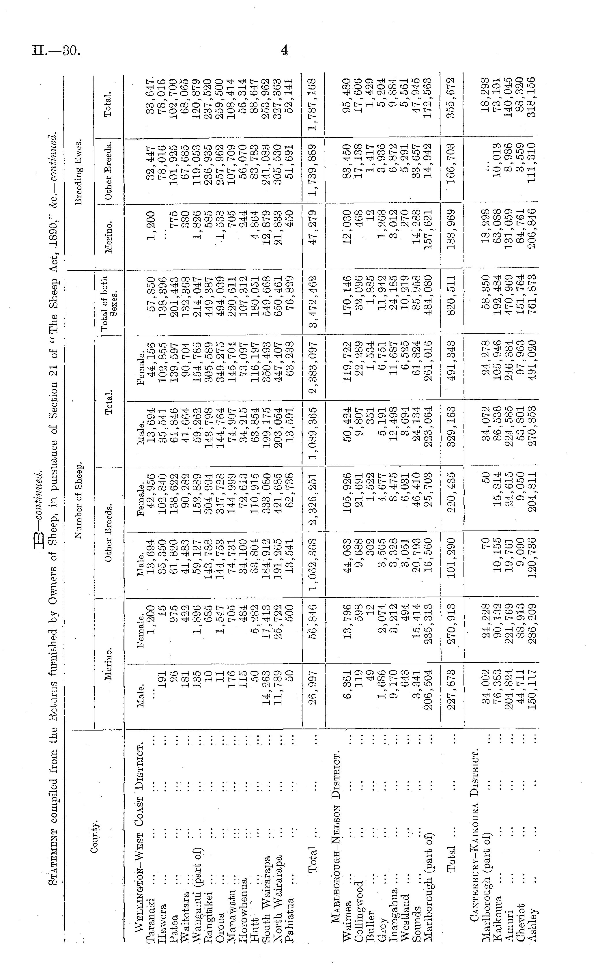 B-continued. Statement compiled from the Returns furnished by Owners of Sheep, in pursuance of Section 21 of "The Sheep Act, 1890," &c.— continued.