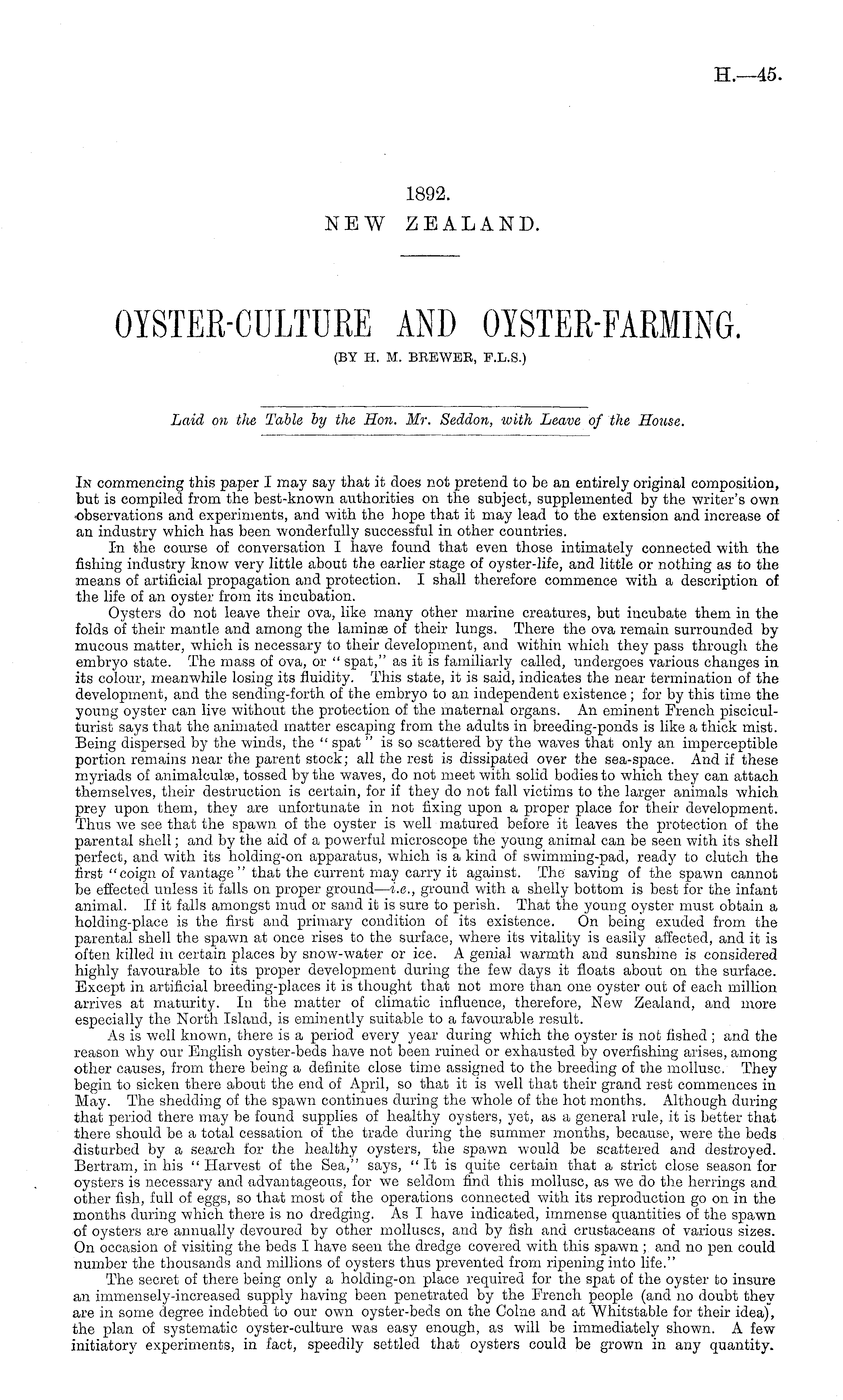 OYSTER-CULTURE AND OYSTER-FARMING. (BY H.M. BREWER, F.L.S.)
