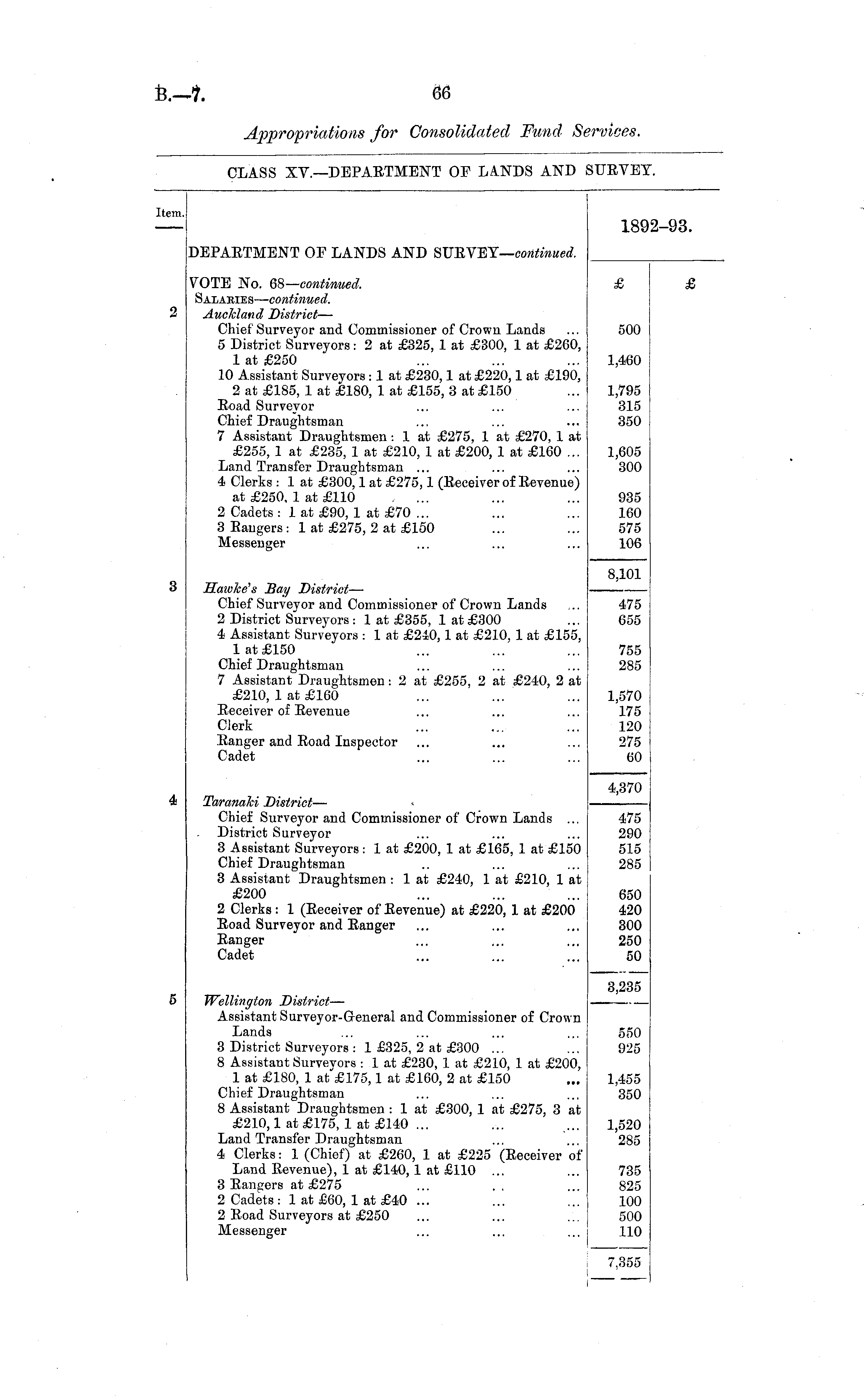 CLASS XV.—DEPARTMENT OF LANDS AND SURVEY.