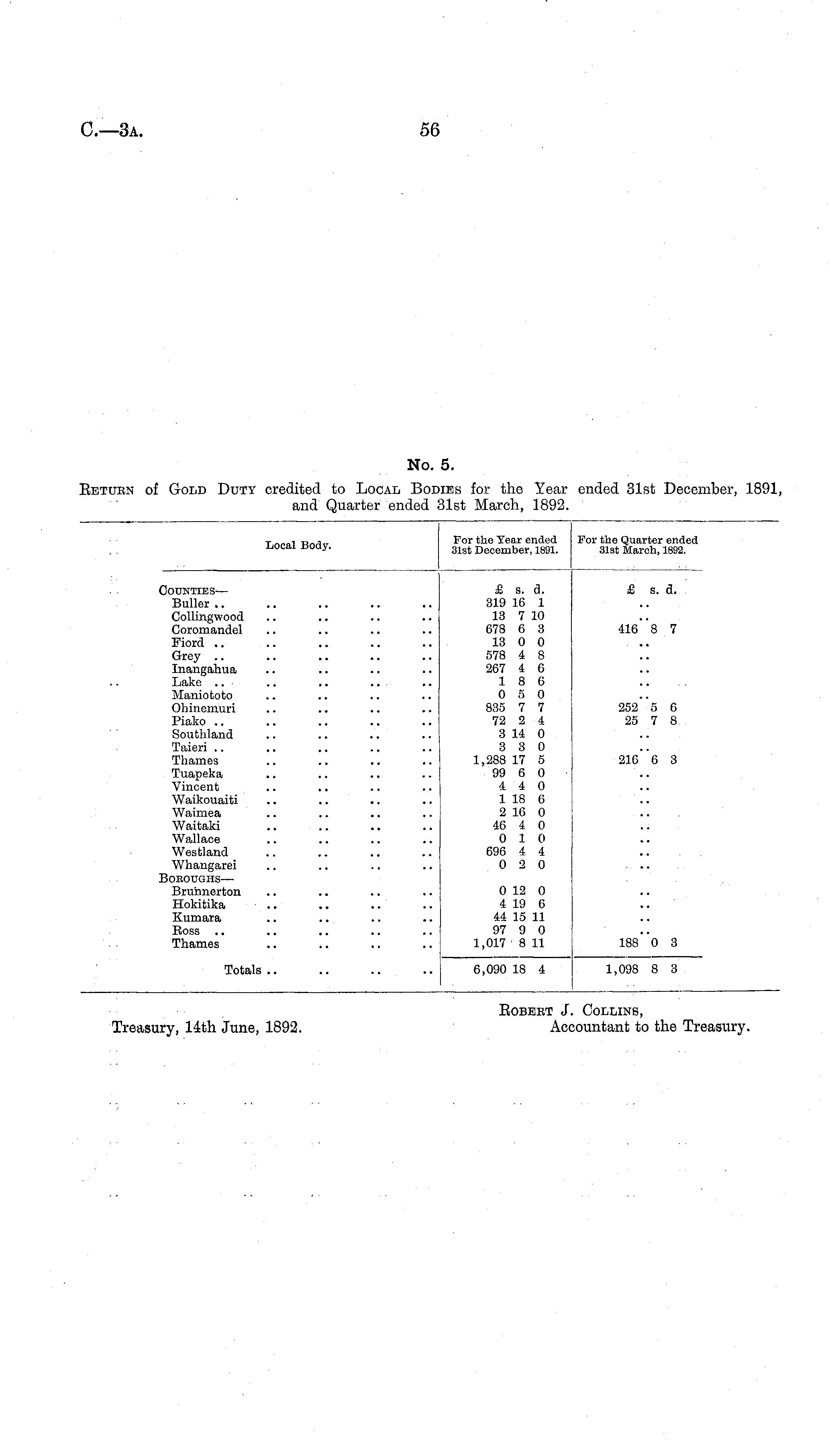 Eobeet J. Collins, Treasury, 14th June, 1892. Accountant to the Treasury.