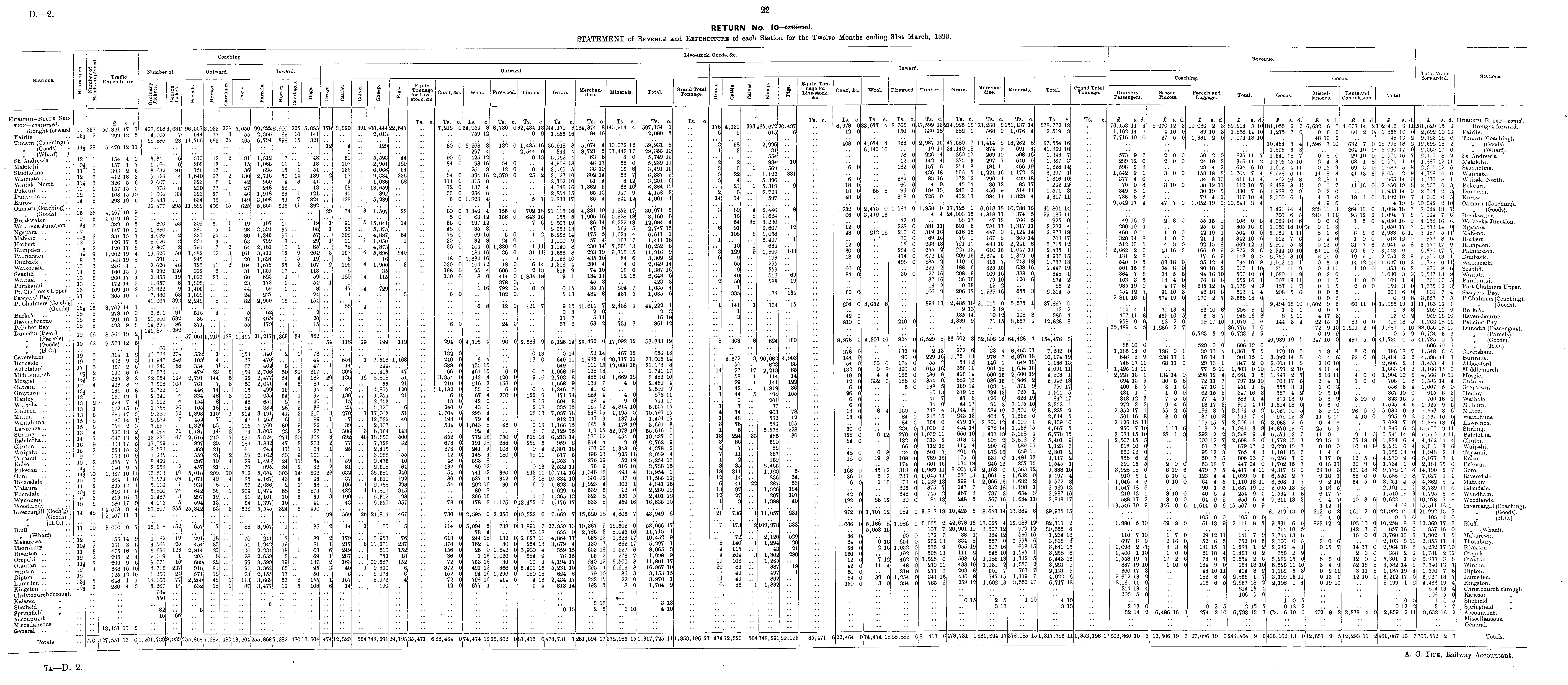 RETURN No.10— continued. STATEMENT of Revenue and Expenditure of each Station for the Twelve Months ending 31st March, 1893.