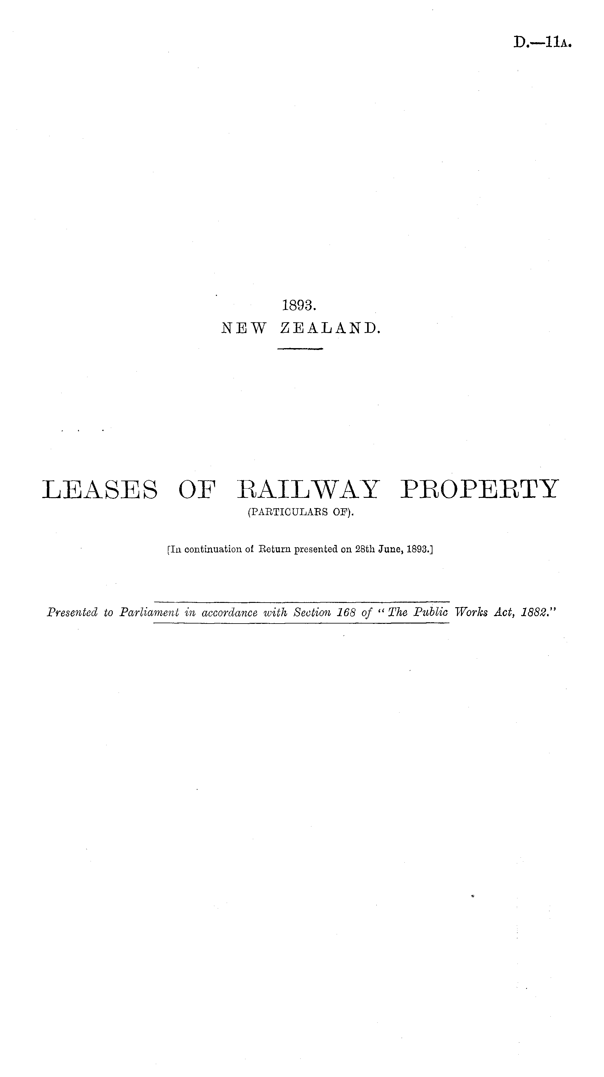 LEASES OF RAILWAY PROPERTY (PARTICULARS OF). [In continuation of Return presented on 28th June, 1893.]