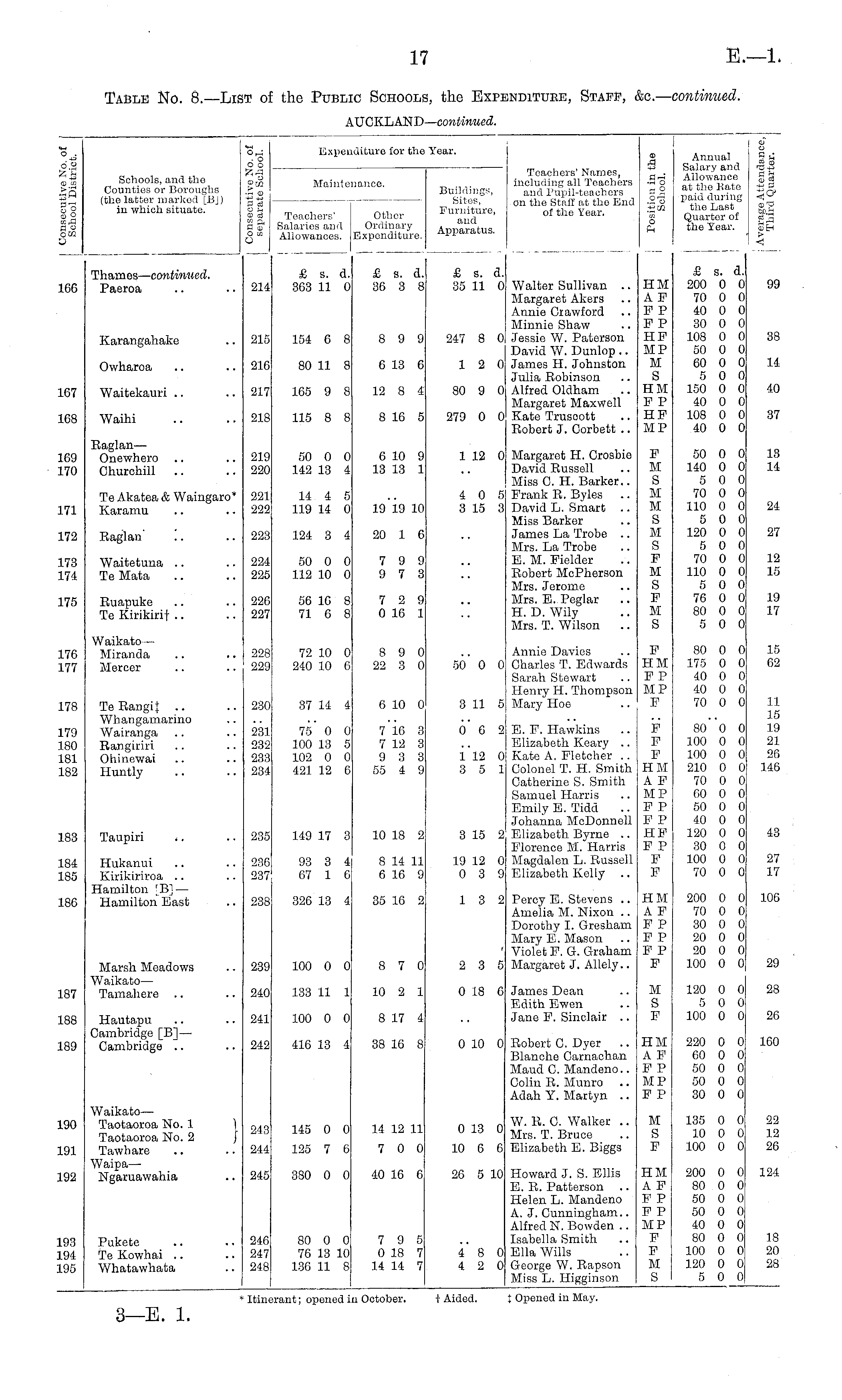 Table No. 8.—List of the Public Schools, the Expenditure, Staff, &c.— continued. AUCKLAND— continued.