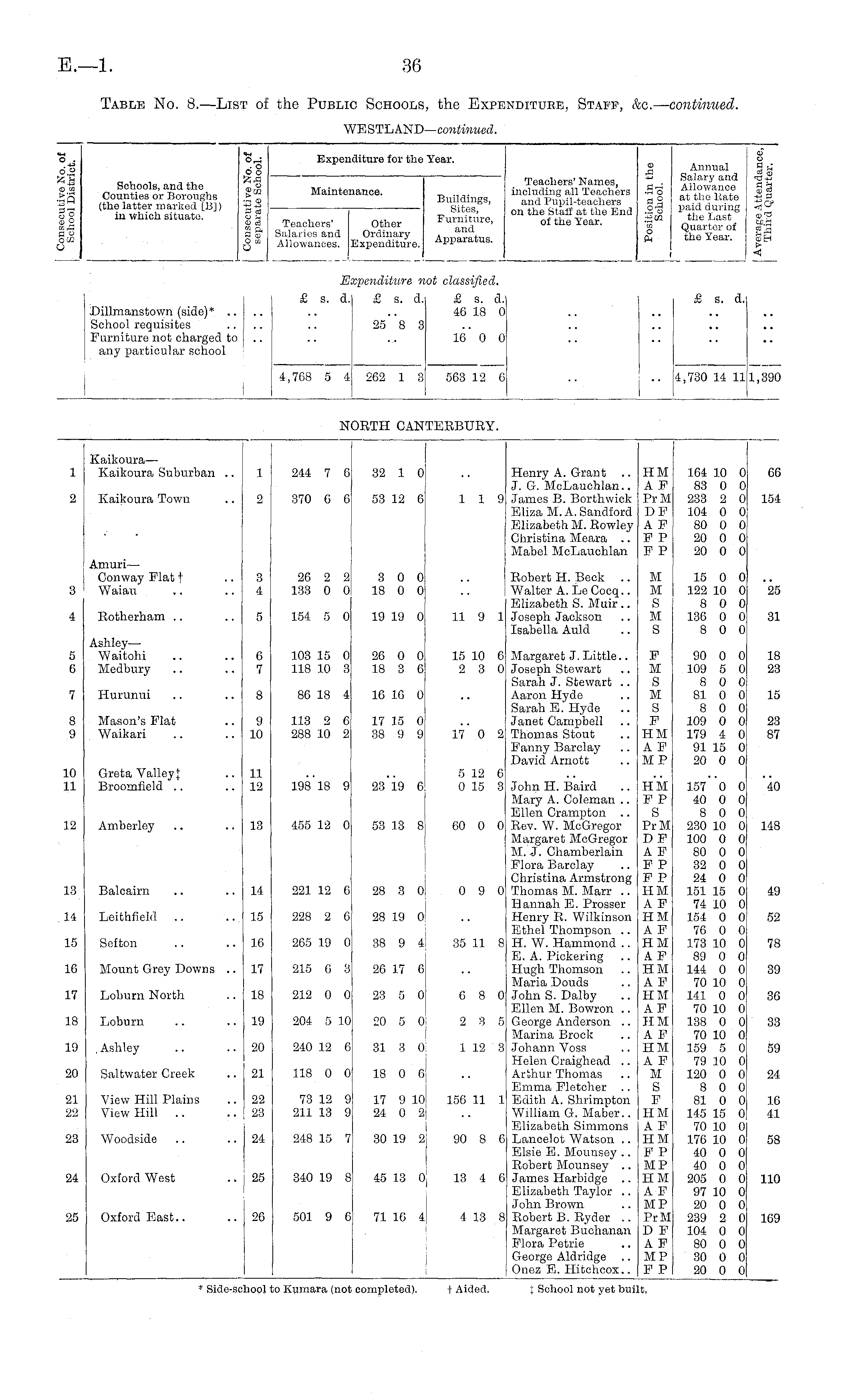 Table No. 8.—List of the Public Schools, the Expenditure, Staff, &c.— continued. WESTLAND— continued.