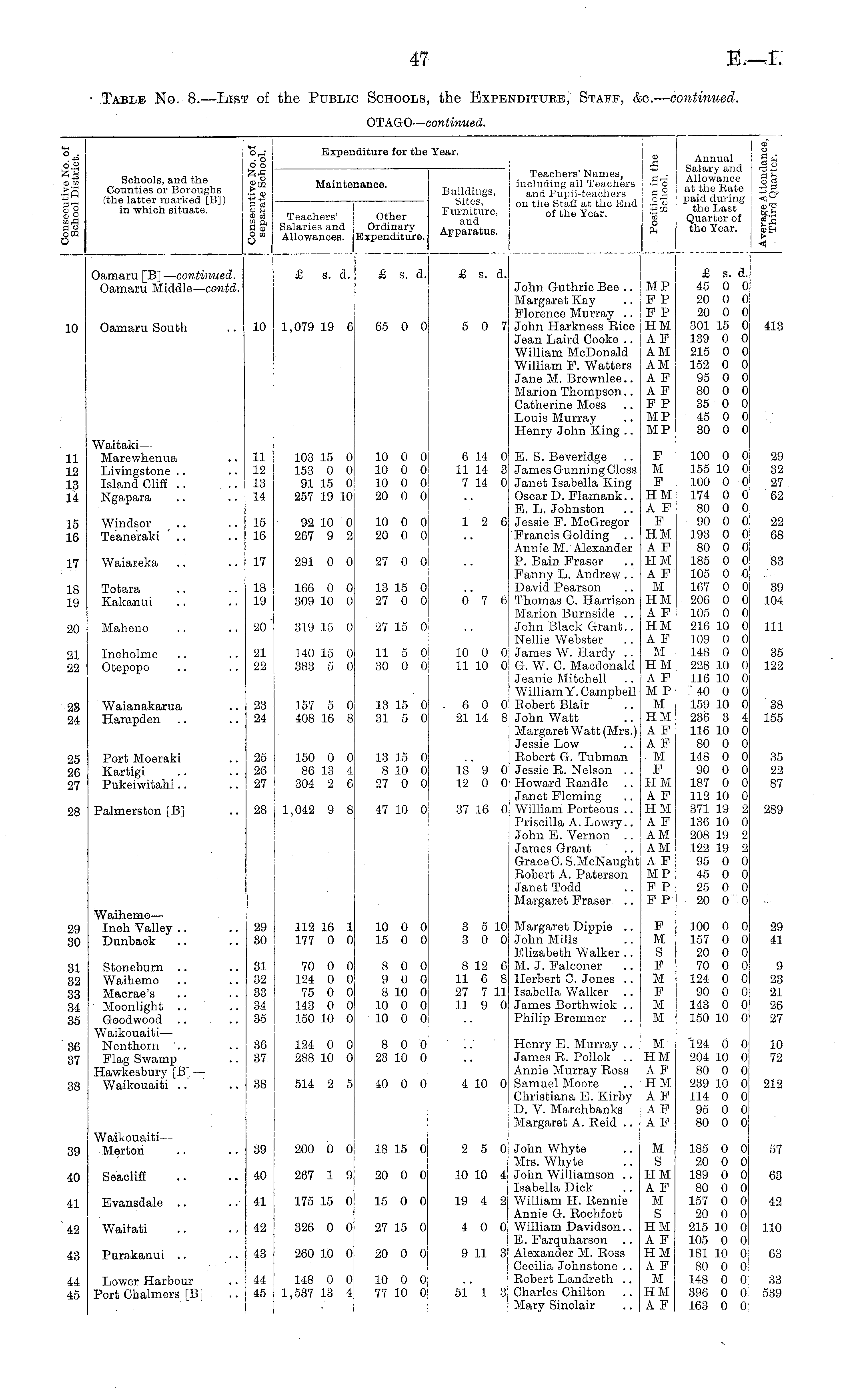 Table No. 8.—List of the Public Schools, the Expenditure, Staff, &c.— continued. OTAGO— continued.