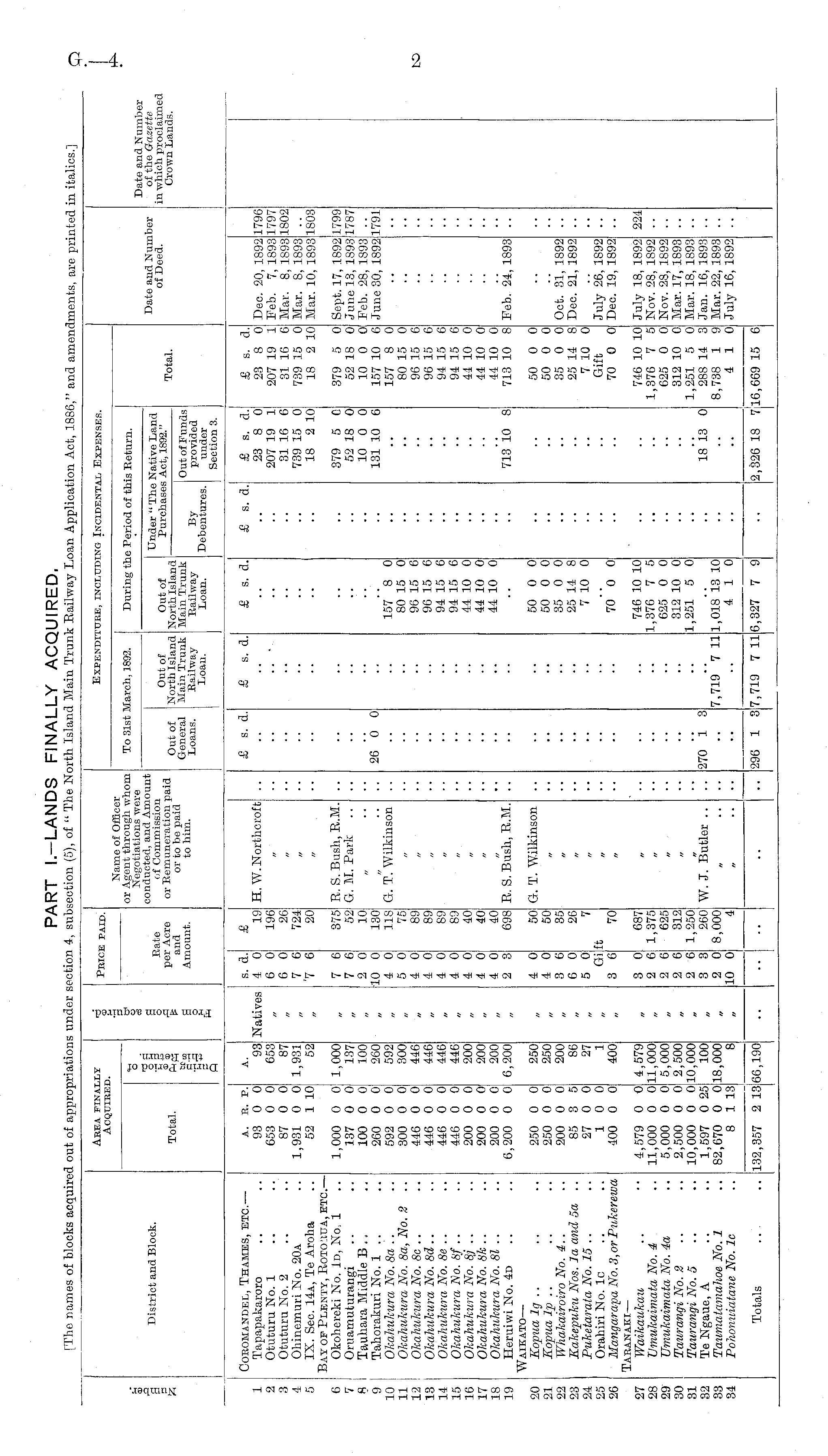 PART I.-LANDS FINALLY ACQUIRED. [The names of blocks acquired out of appropriations under section 4, subsection (5), of "The North Island Main Trunk Railway Loan Application Act, 1886," and amendments, are printed in italics.]