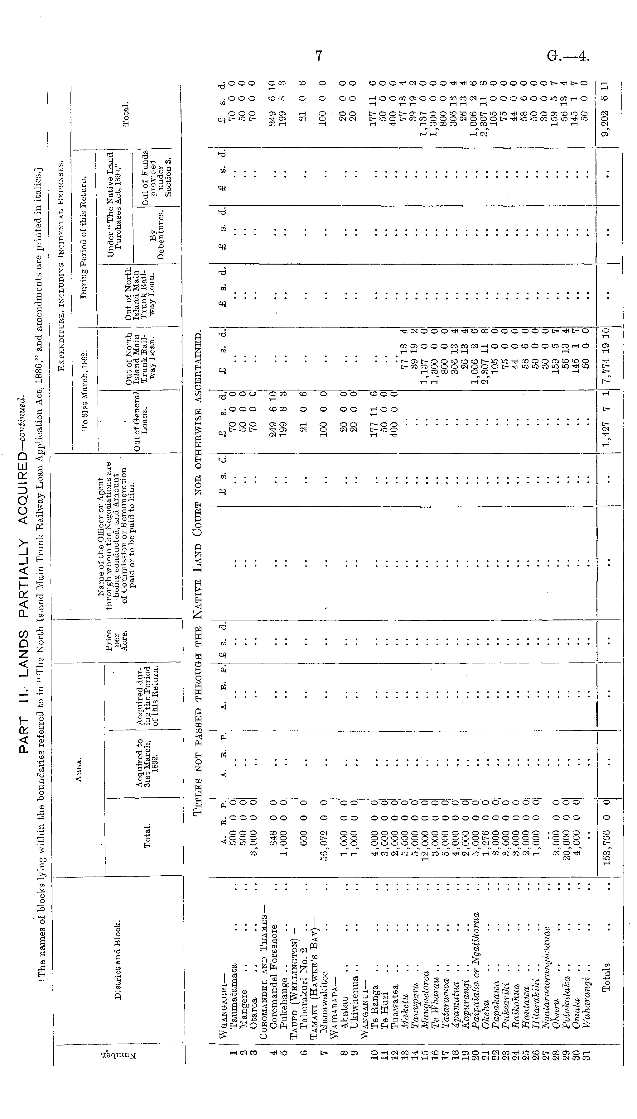 PART II.-LANDS PARTIALLY ACQUIRED-continued. [The names of blocks lying within the boundaries referred to in "The North Island Main Trunk Railway Loan Application Act, 1886," and amendments are printed in italics.]