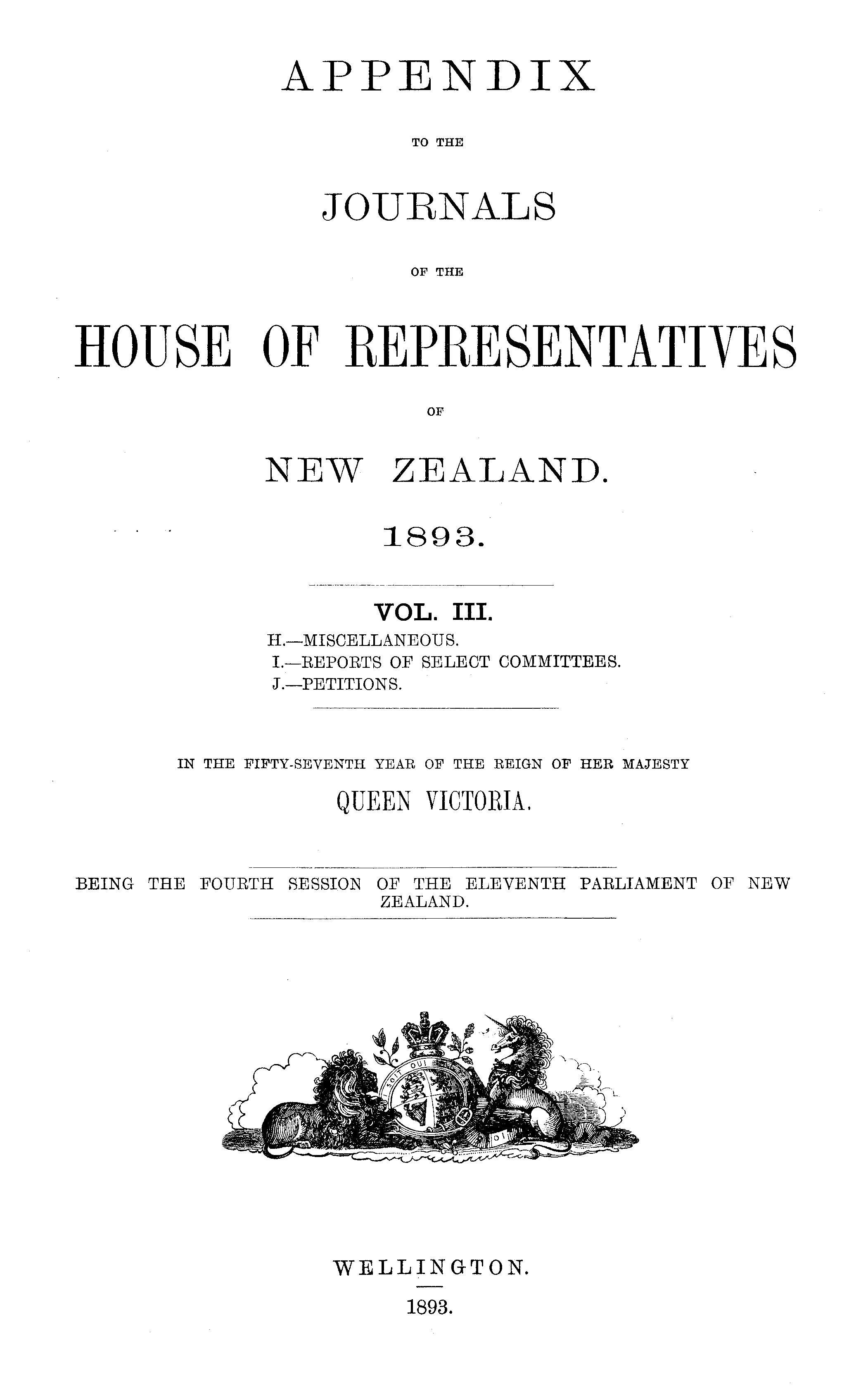APPENDIX TO THE JOURNALS OF THE HOUSE OF REPRESENTATIVES OF NEW ZEALAND. 1893.