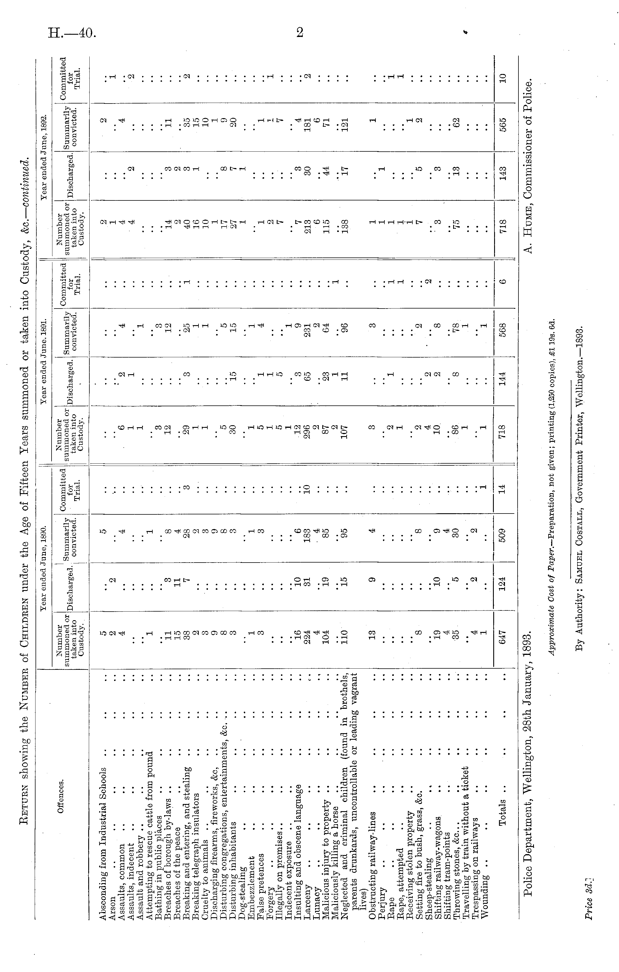 Police Department, Wellington, 28th January, 1893. A. Hume, Commissioner of Police. Approximate Cost of Paper. — Preparation, not given; printing (1,250 copies), £1 19g. 6d.