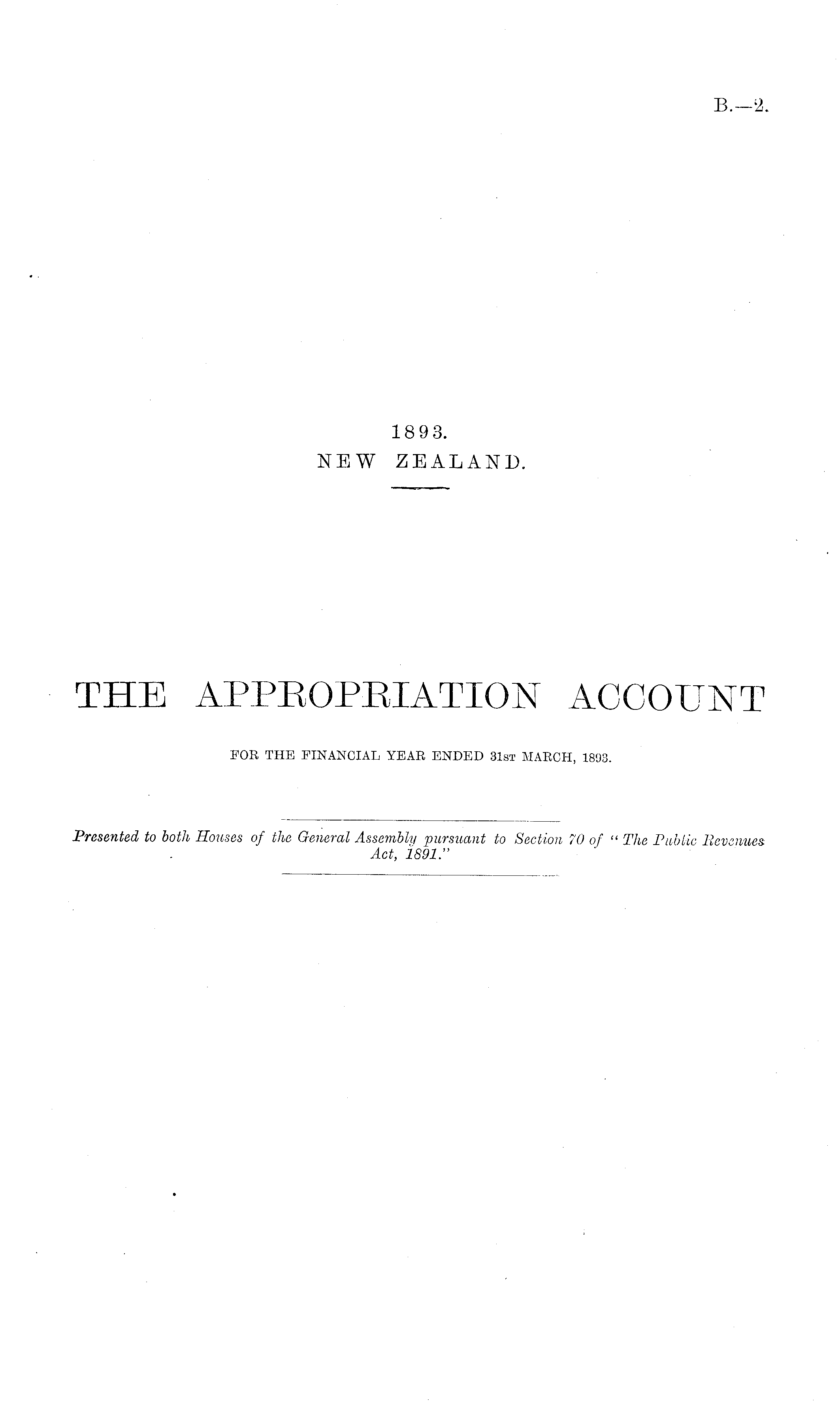 THE APPROPRIATION ACCOUNT FOR THE FINANCIAL YEAR ENDED 31st MARCH, 1893.