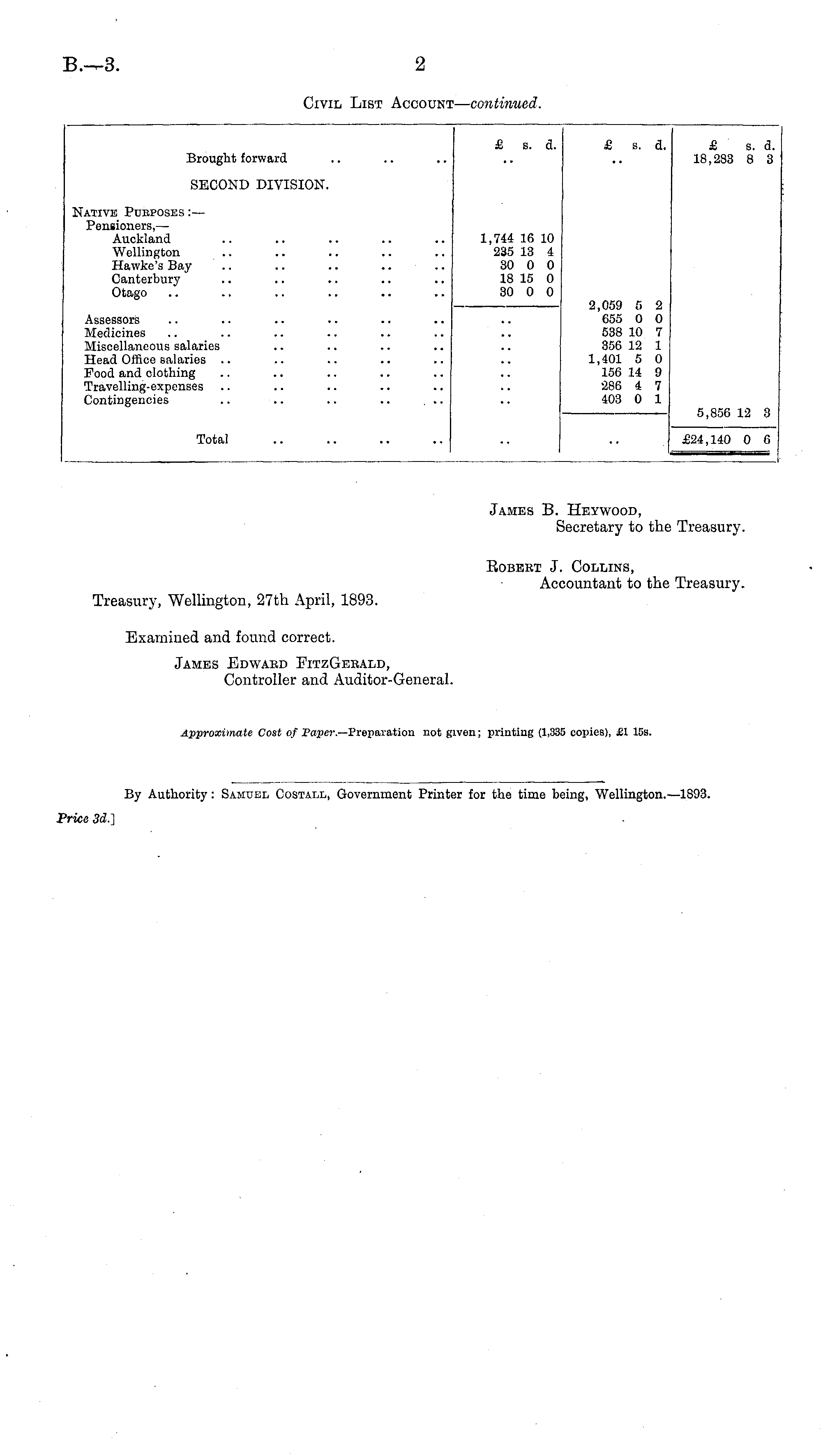 James B. Heywood, Secretary to the Treasury. Bobeut J. Collins, Accountant to the Treasury. Treasury, Wellington, 27th April, 1893. Examined and found correct. James Edwaed FitzGerald, Controller and Auditor-General.