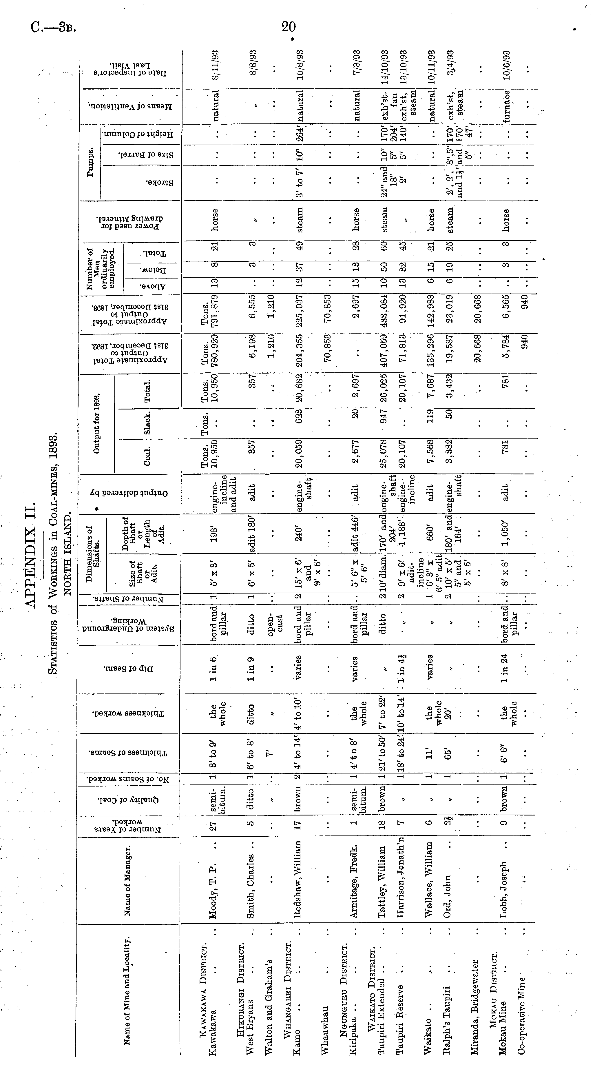 Statistics of Workings in Coal-mines, 1893. NORTH ISLAND.