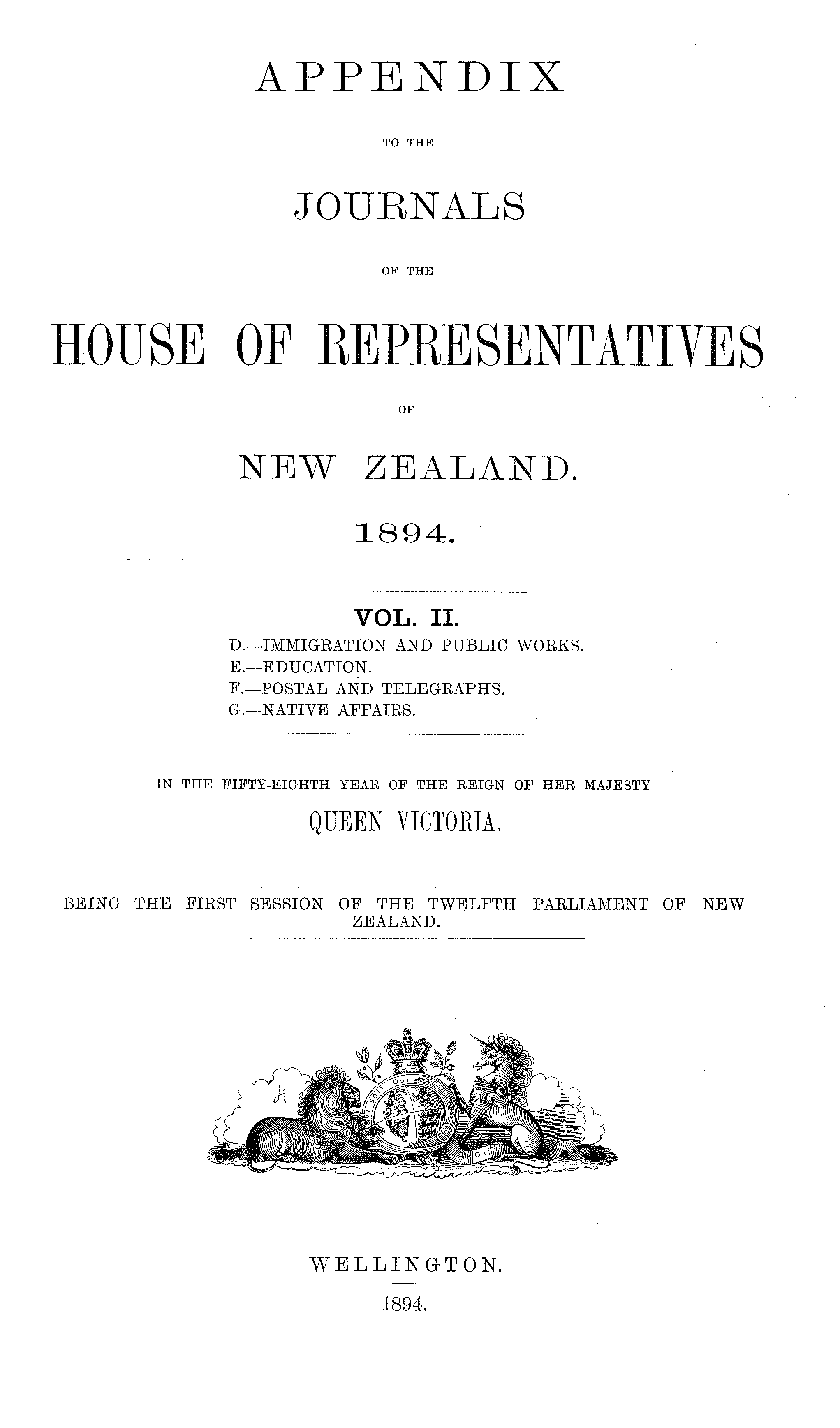 APPENDIX TO THE JOURNALS OF THE HOUSE OF REPRESENTATIVES OF NEW ZEALAND. 1894.