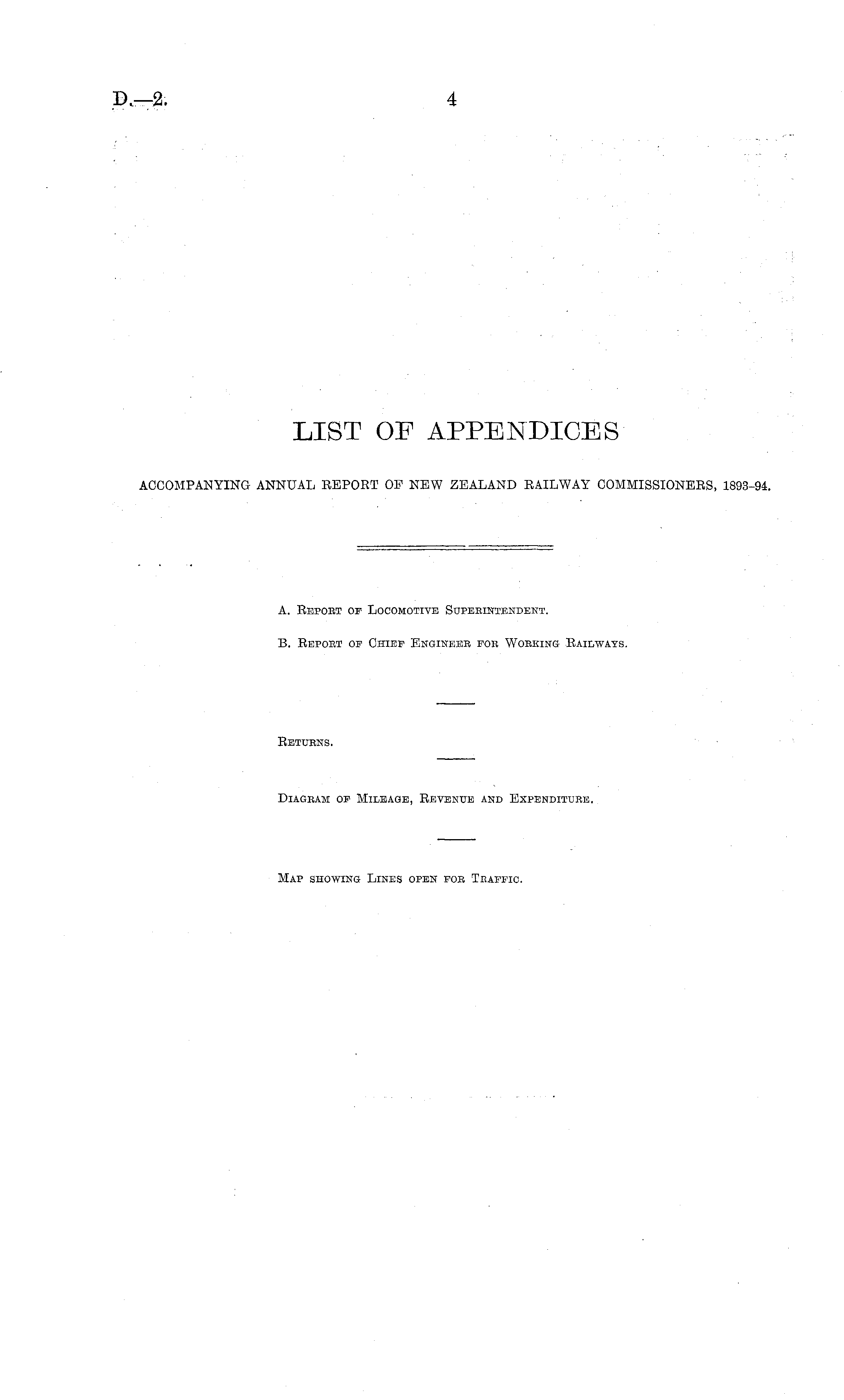 LIST OF APPENDICES ACCOMPANYING ANNUAL REPORT OF NEW ZEALAND RAILWAY COMMISSIONERS, 1893-94.