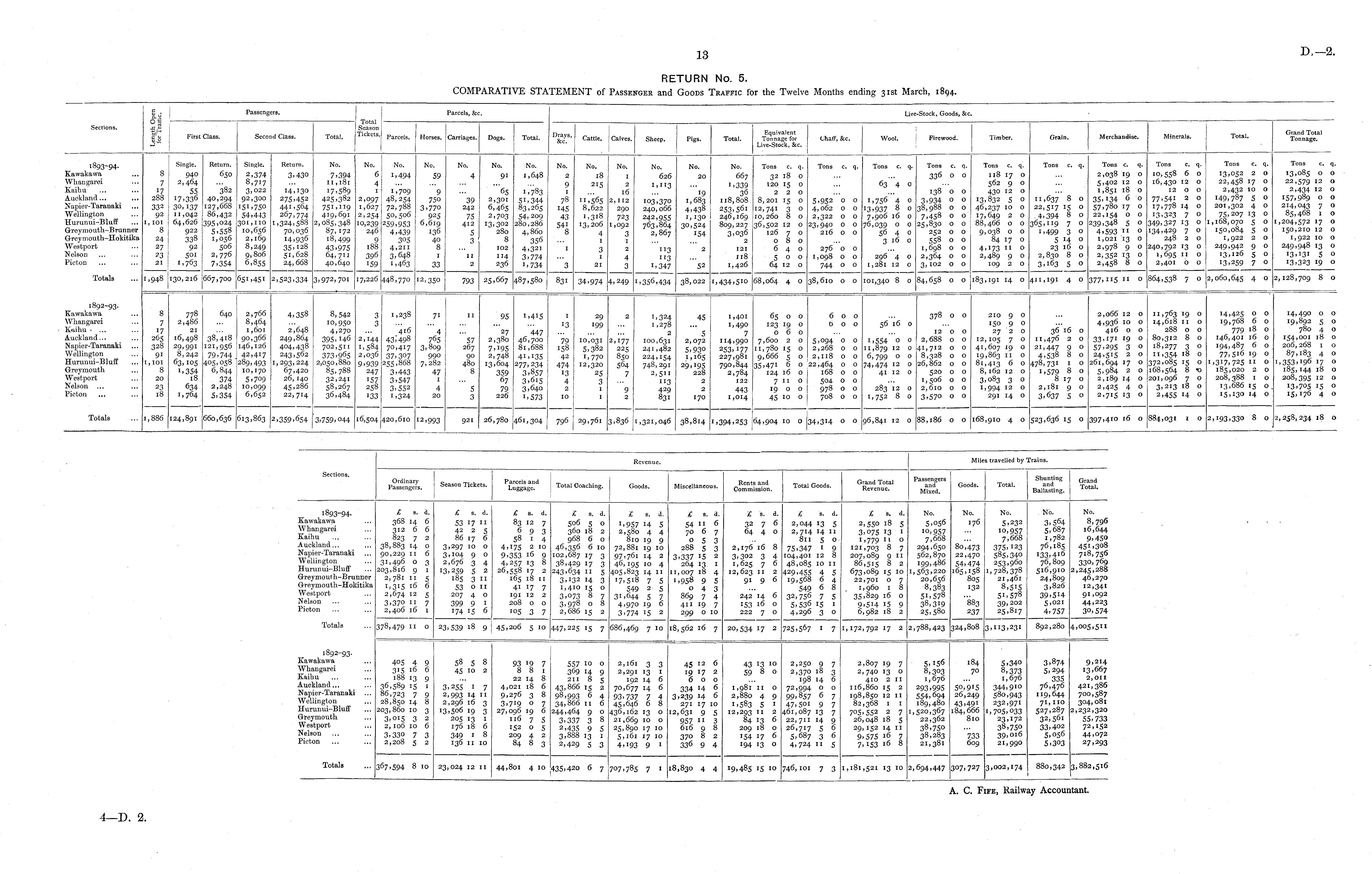 RETURN No. 5. COMPARATIVE STATEMENT of Passenger and Goods Traffic for the Twelve Months ending 31st March, 1894.